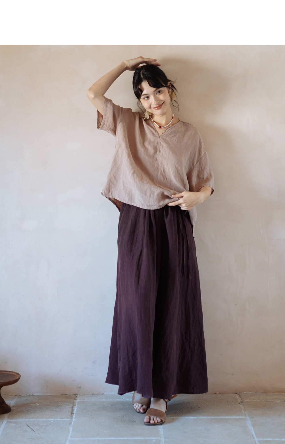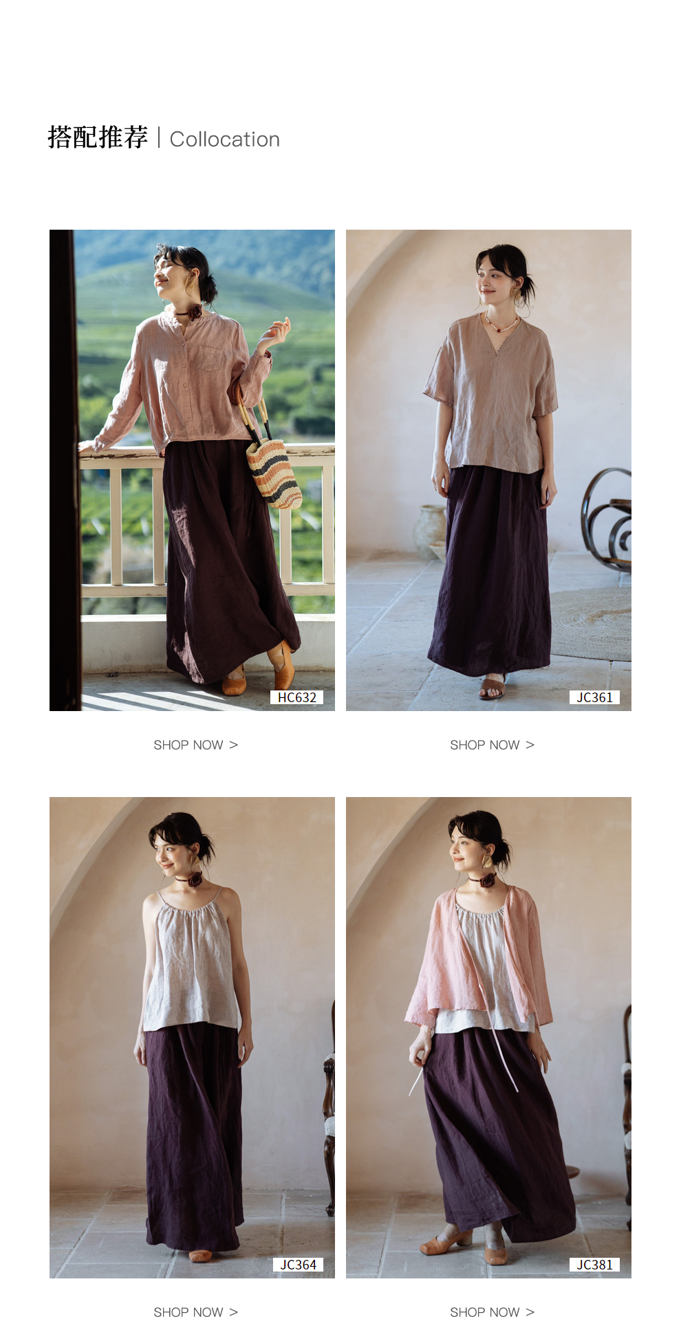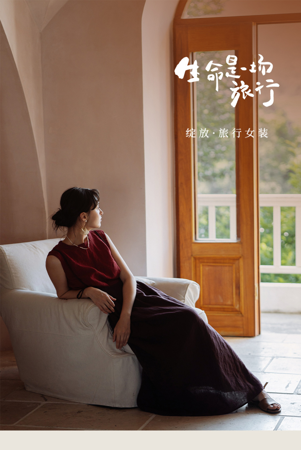 以天然亚麻为载体,融合热烈色彩与自在剪裁为身在城市、心怀远方的女性提供兼具美学与舒适的旅行着装