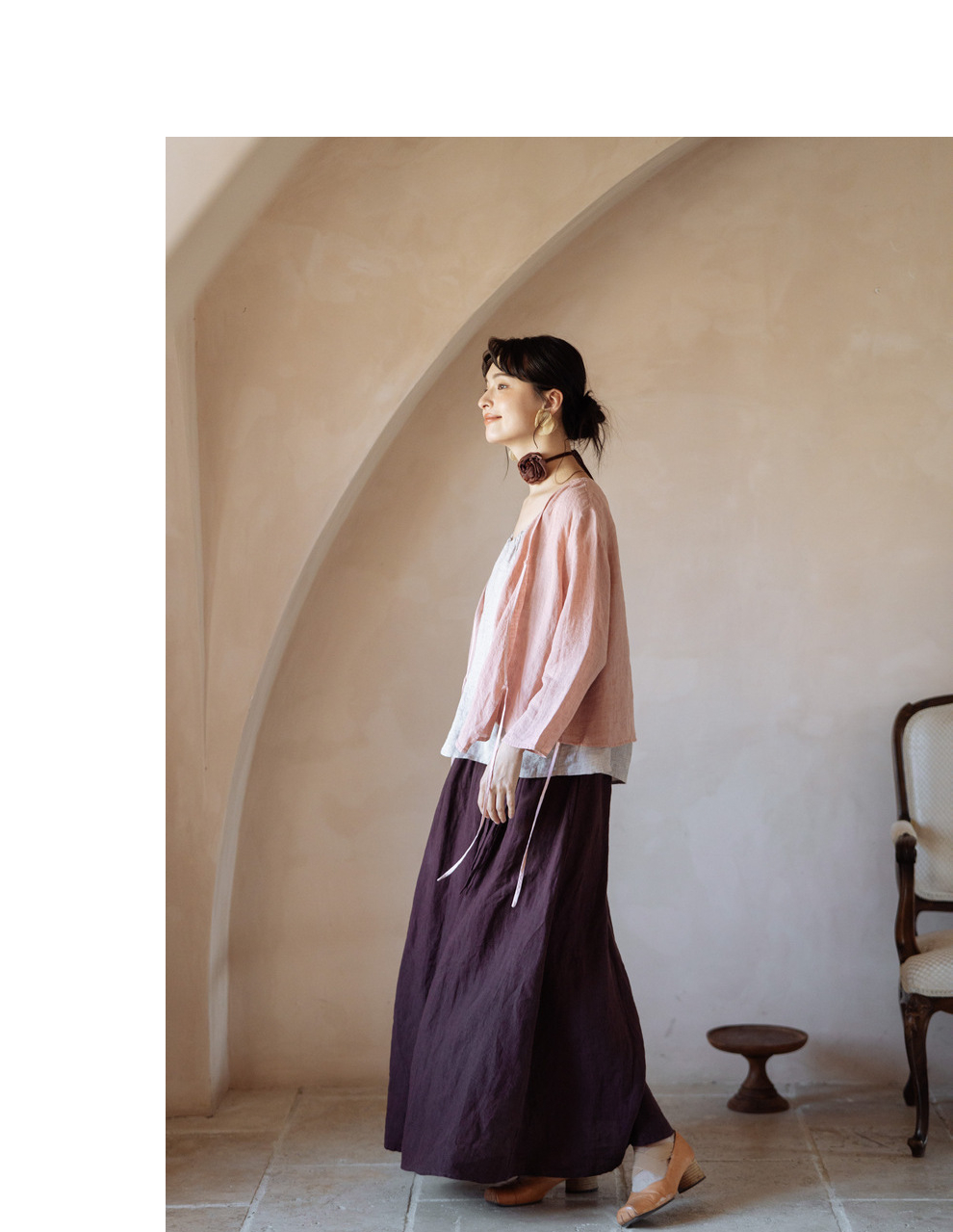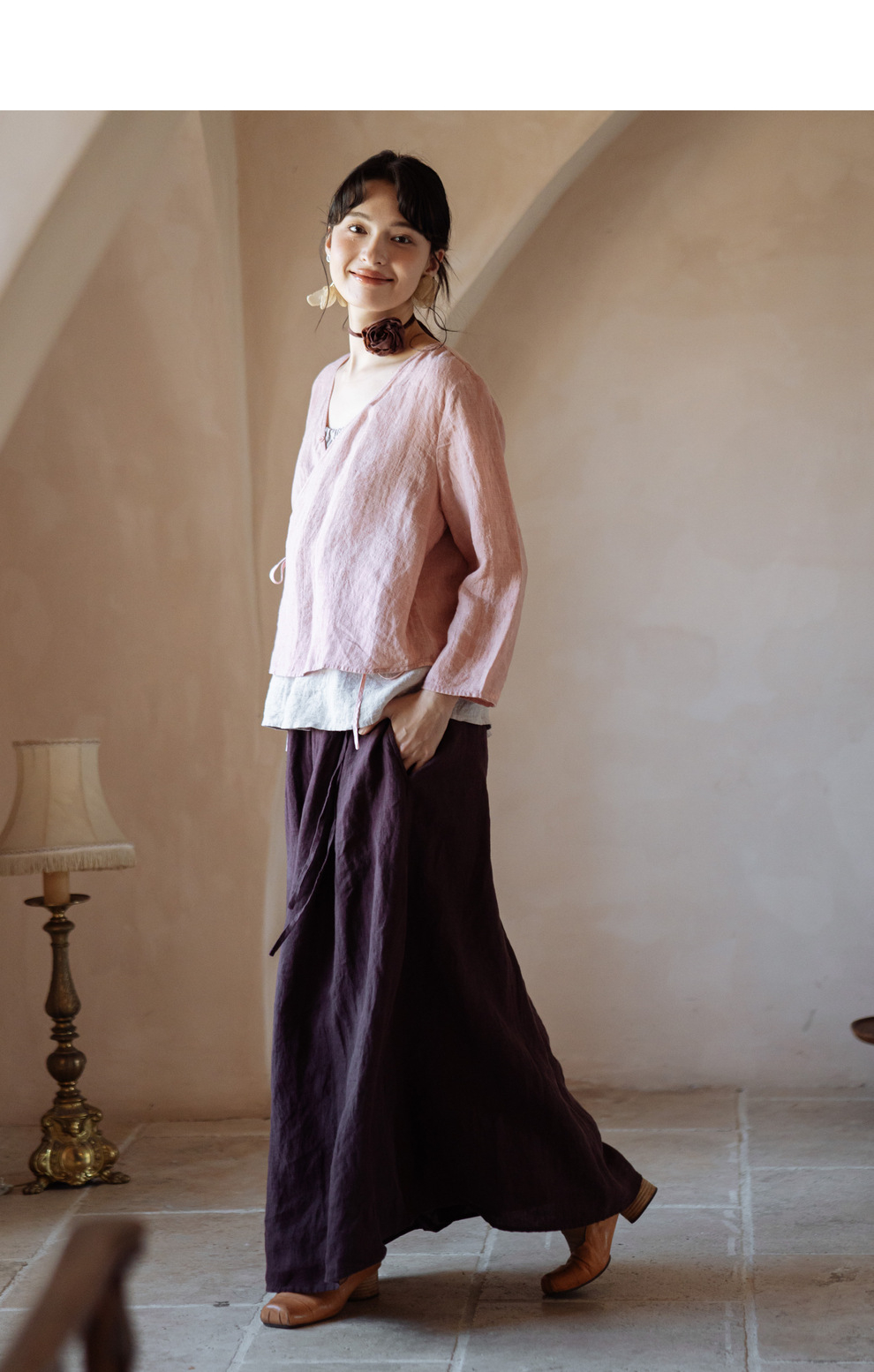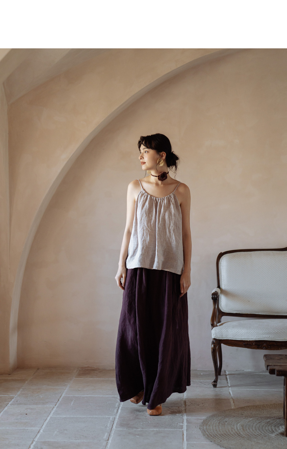 以天然亚麻为载体,融合热烈色彩与自在剪裁为身在城市、心怀远方的女性提供兼具美学与舒适的旅行着装