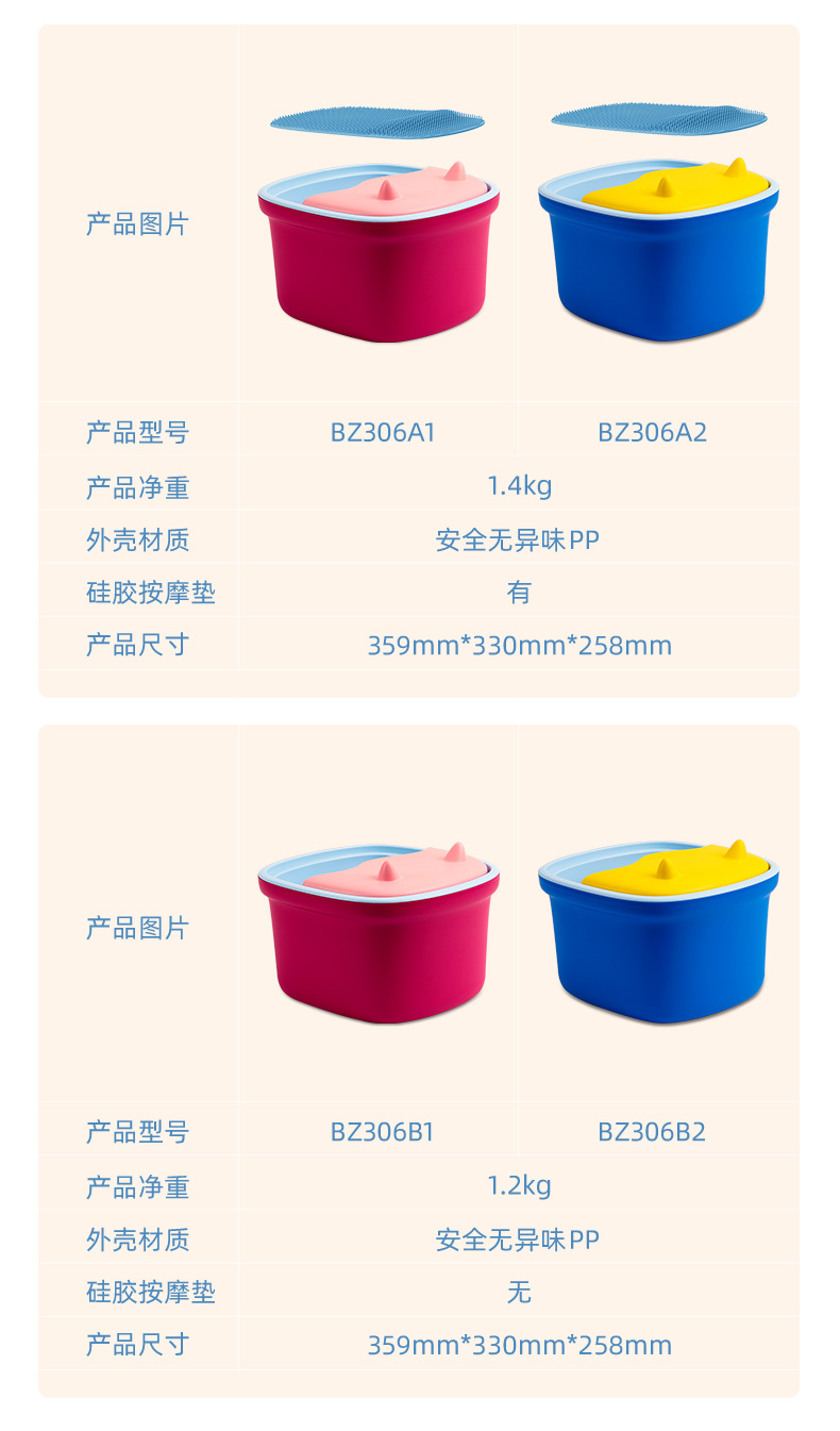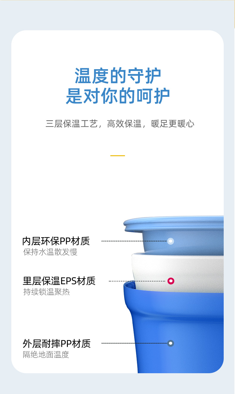 蓓慈萌萌哒BZ306足浴盆泡脚桶家用塑料足浴桶三层保温洗脚桶