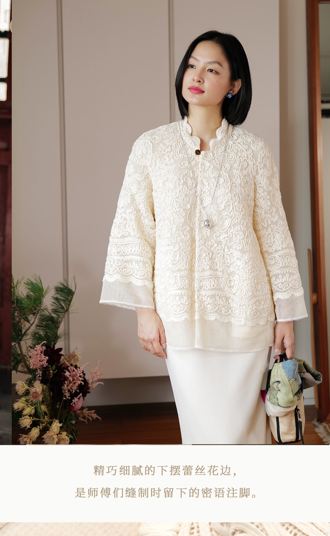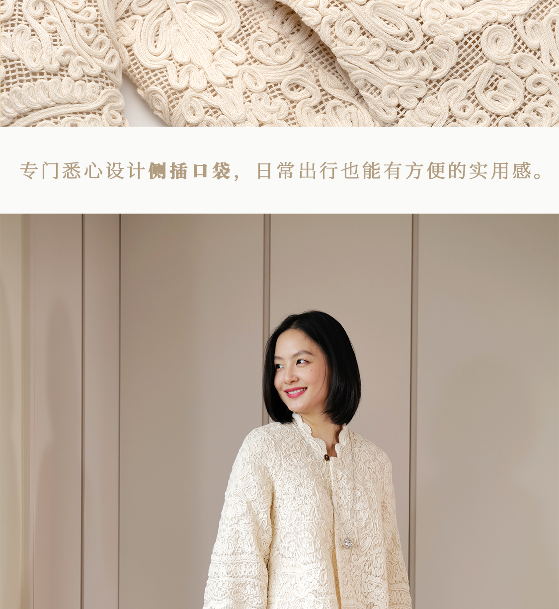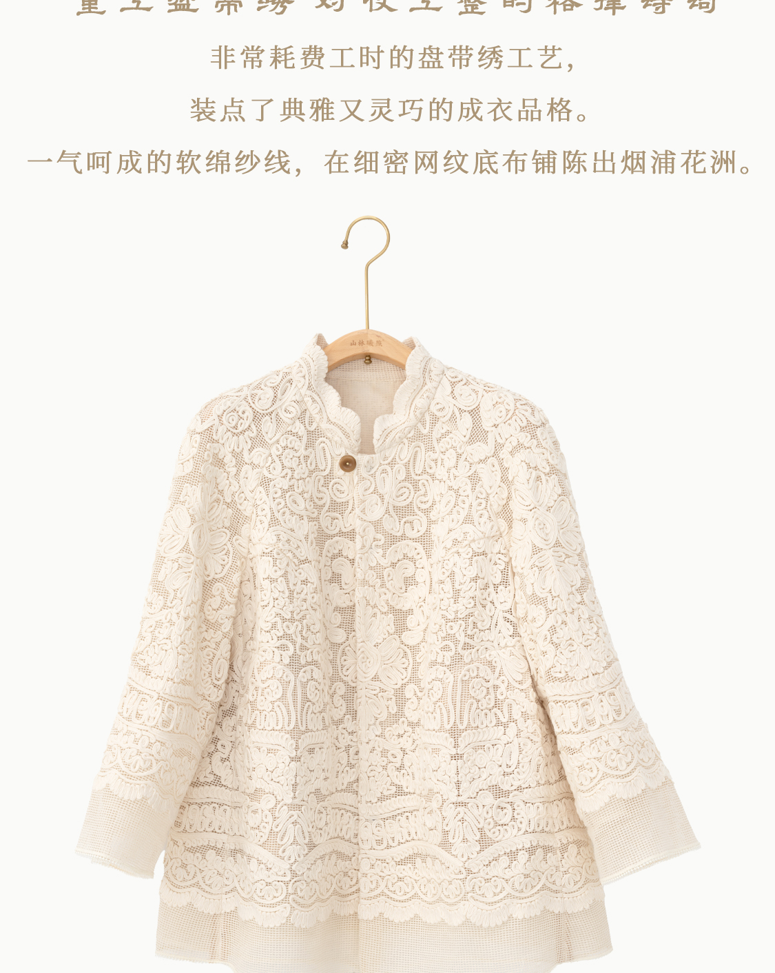 烟浦花洲 重工盘带绣蕾丝花边 桑蚕丝里衬立领中式开衫优雅女先生