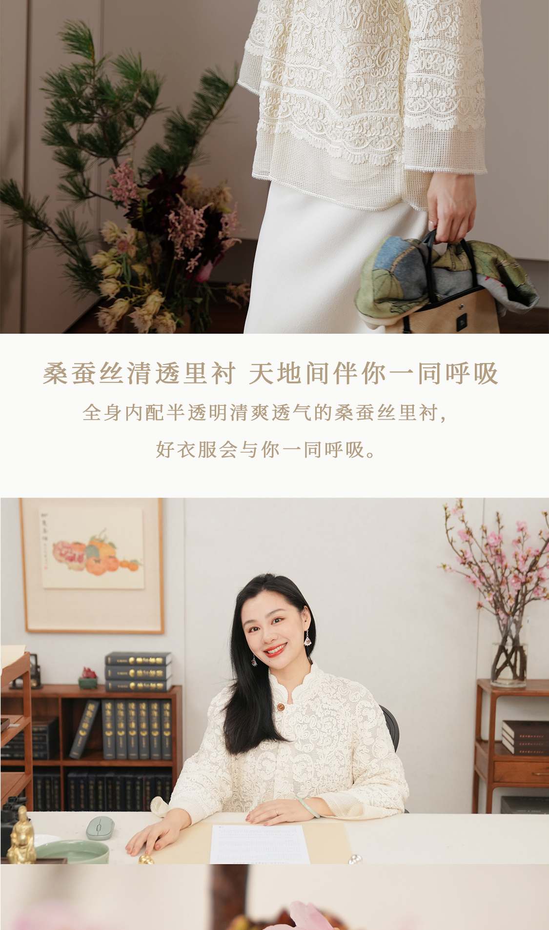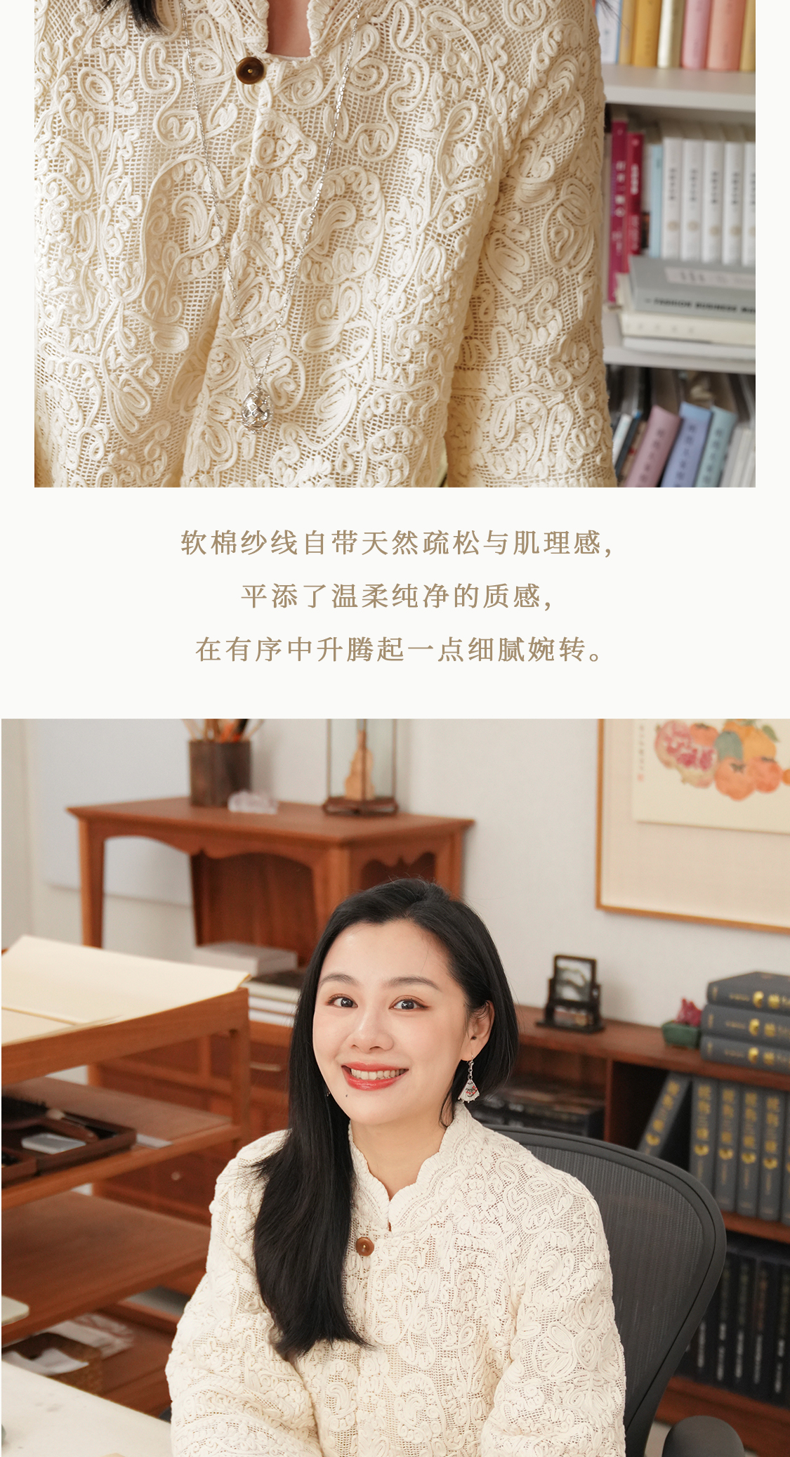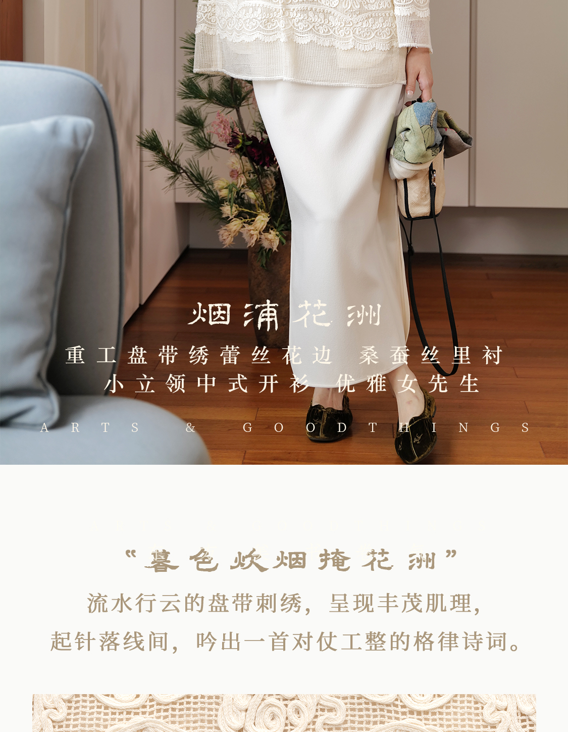 烟浦花洲 重工盘带绣蕾丝花边 桑蚕丝里衬立领中式开衫优雅女先生