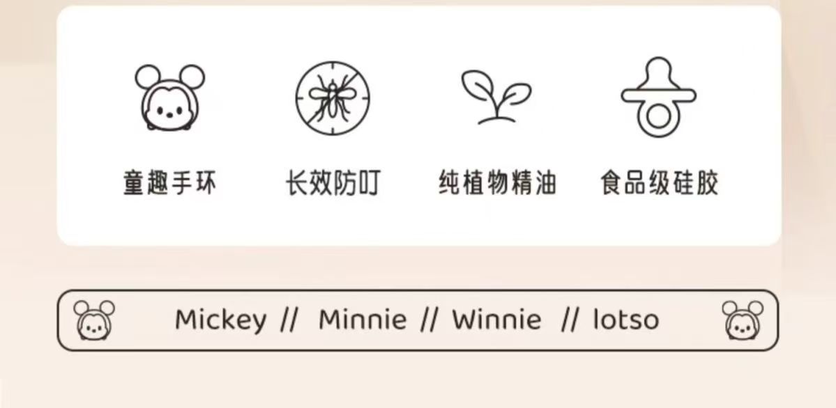 迪士尼正版防蚊手环儿童宝宝神器成人户外驱蚊精油随身蚊虫手链