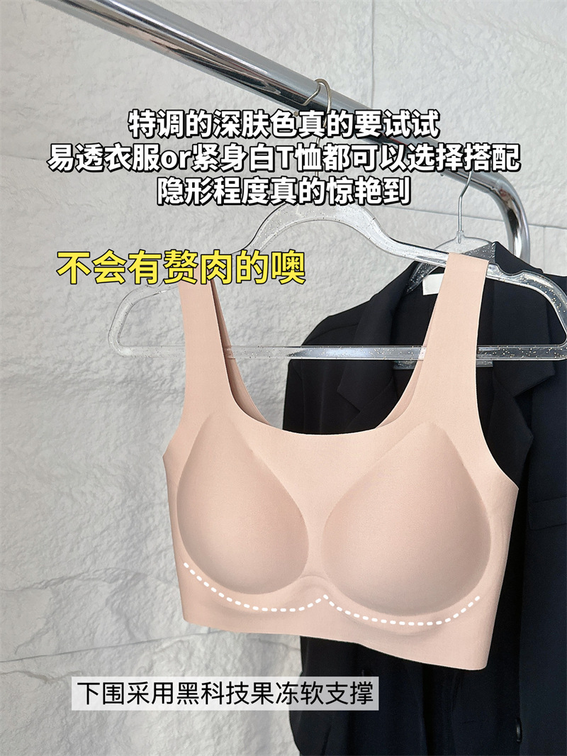 【“会隐身”!粉底液隐形无痕内衣】轻薄聚拢超有型,上身融为一体,超赞的棉花糖感耶!女夏季薄款大胸显小聚拢无尺码深肤色背心文胸