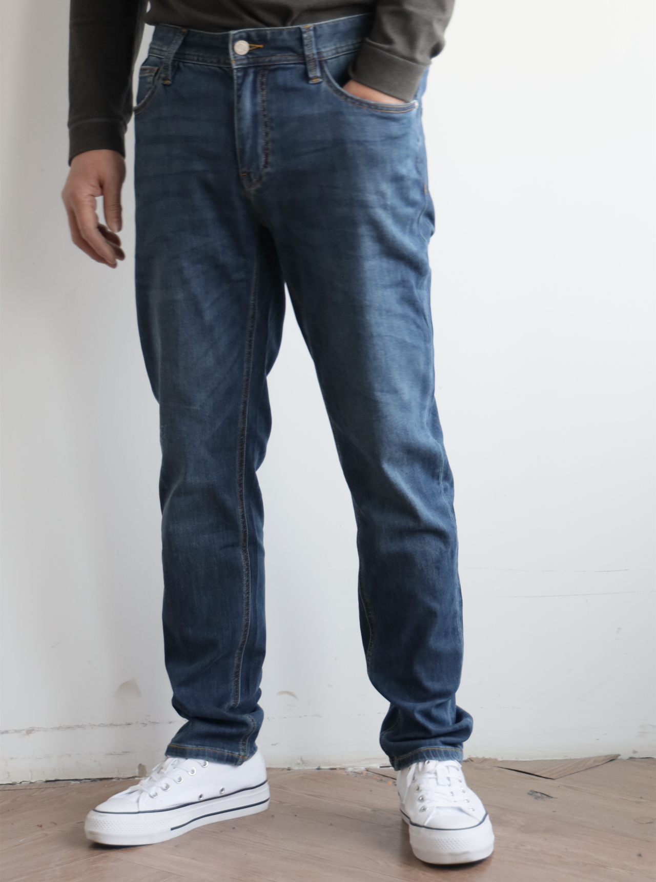 G.X.G 元单弹力水洗修身小直筒 牛仔裤