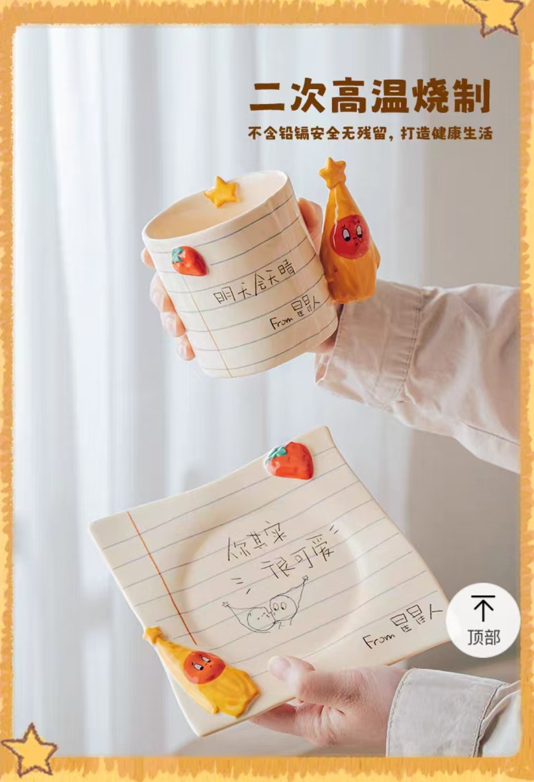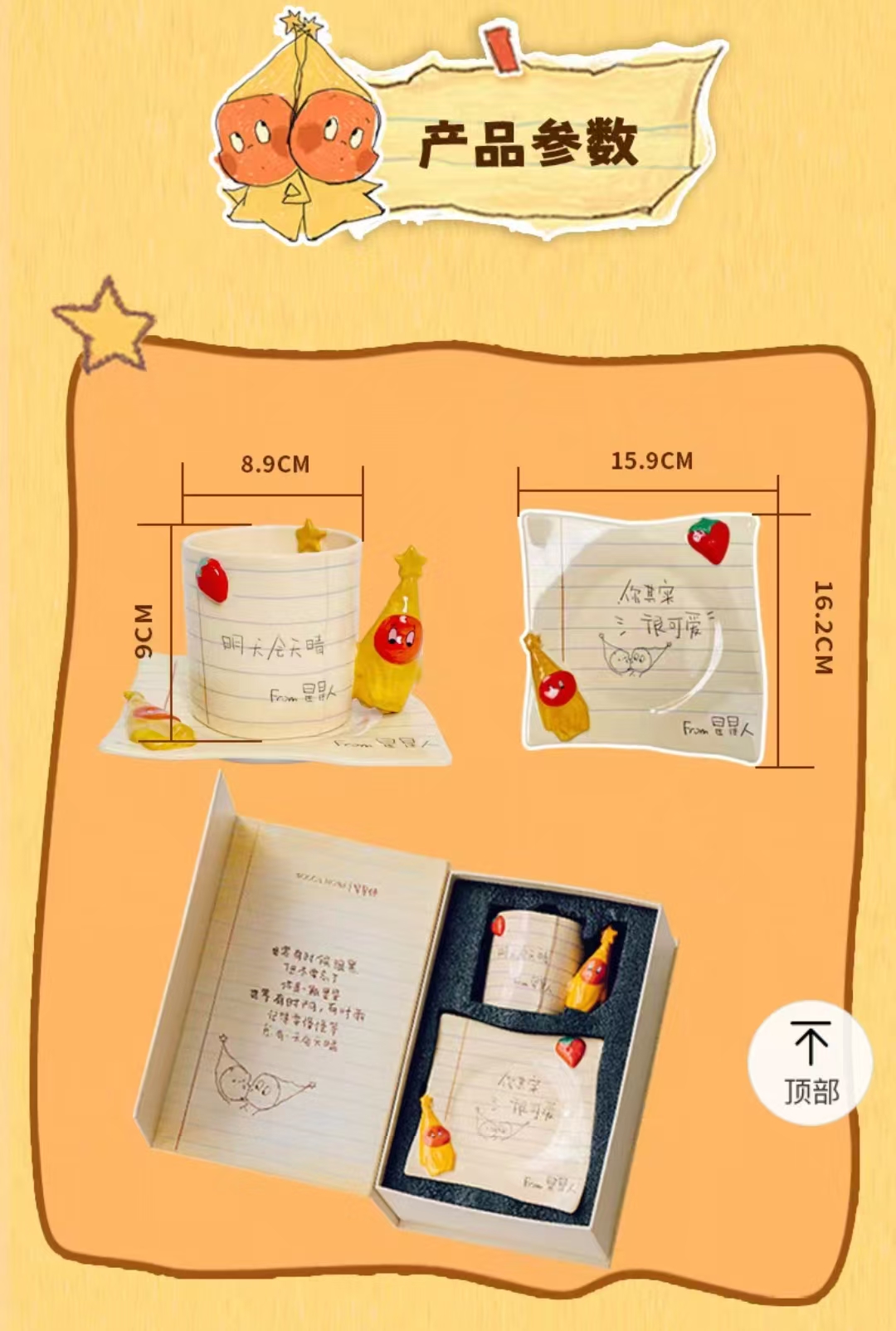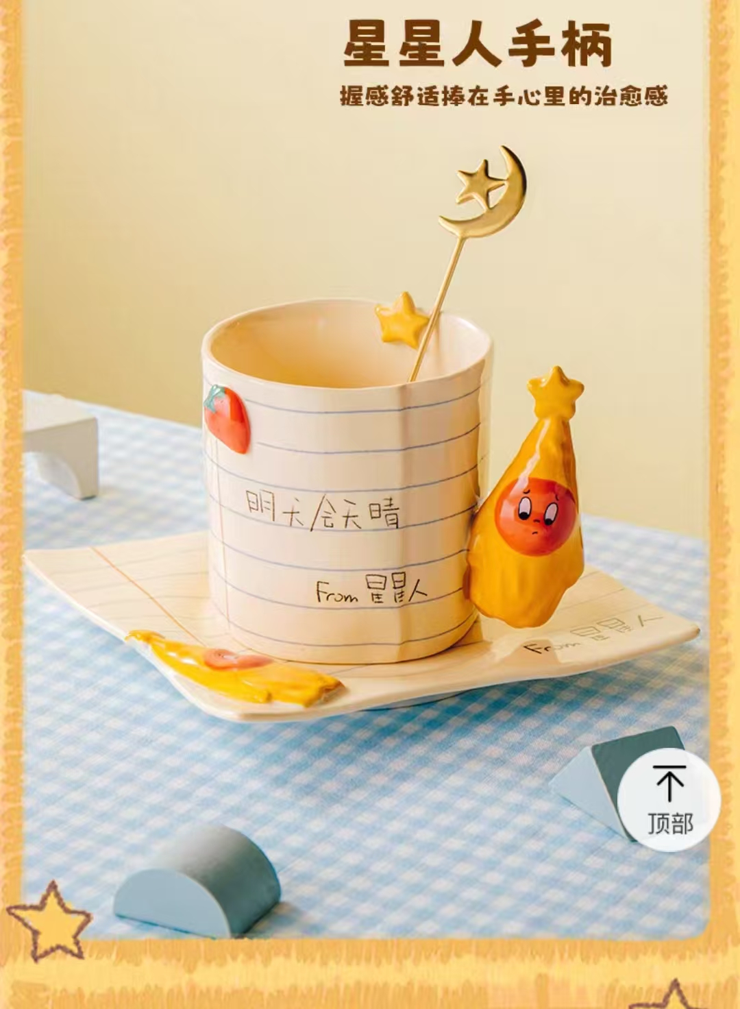 星星人联名杯子套装马克杯咖啡杯碟女生可爱卡通生日礼物情侣水杯 bj