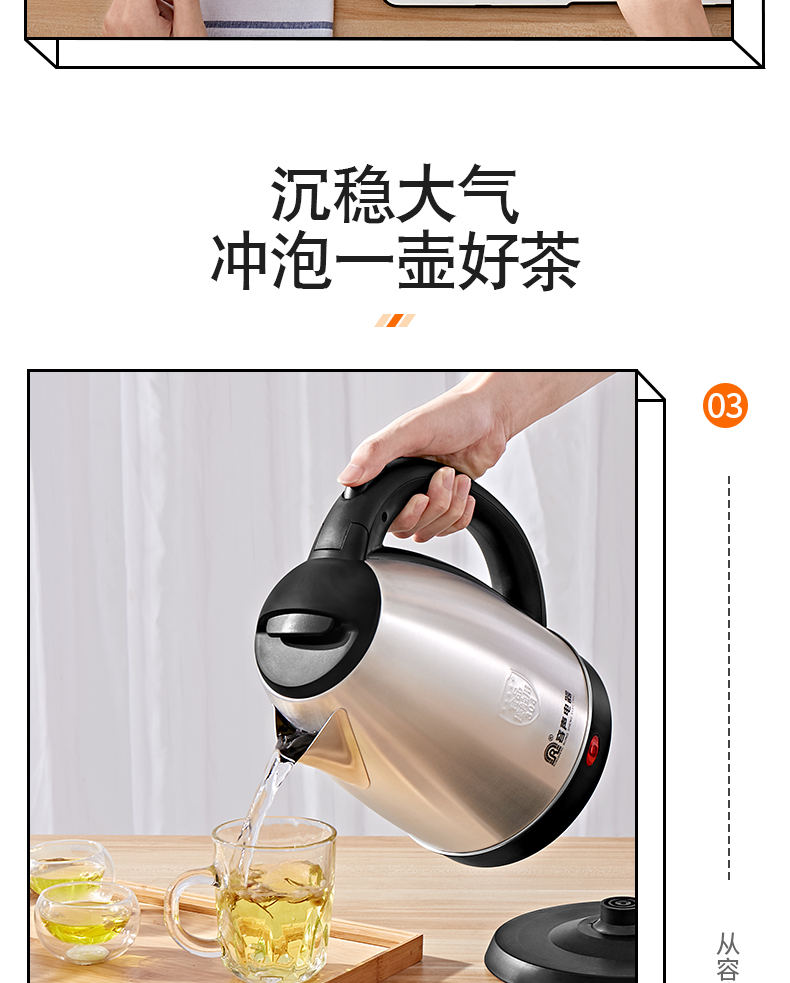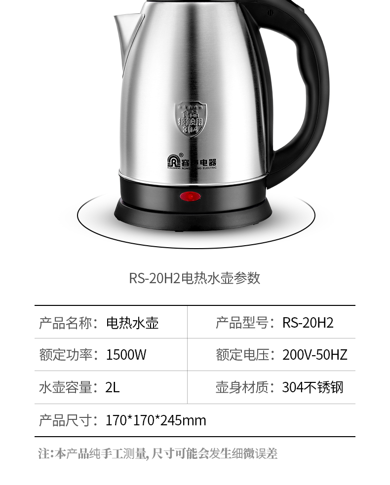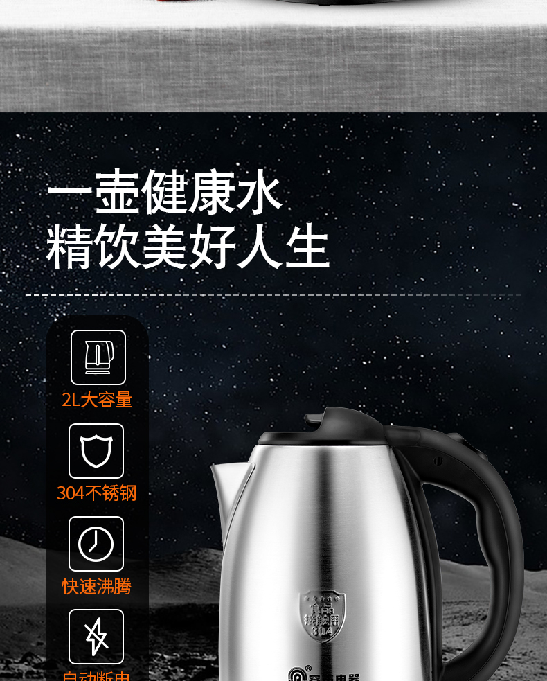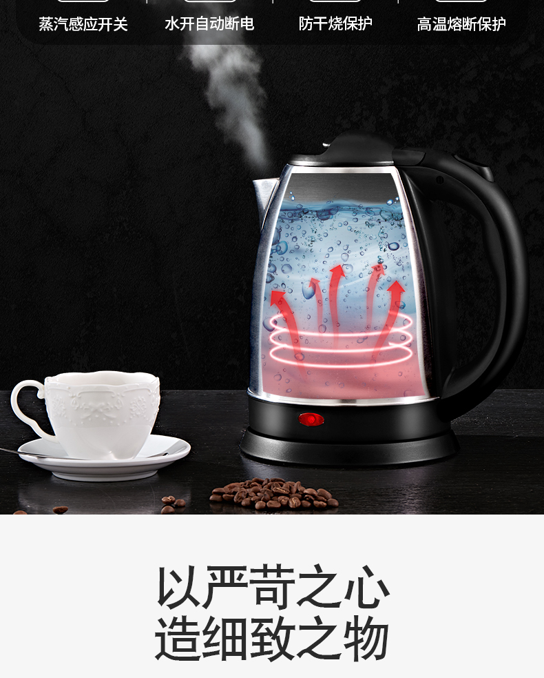 全自动断电烧水壶 2L大容量 304不锈钢 防烫手防干烧