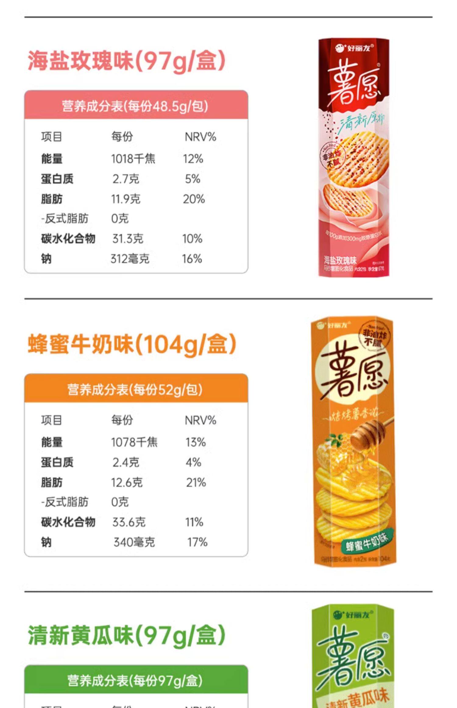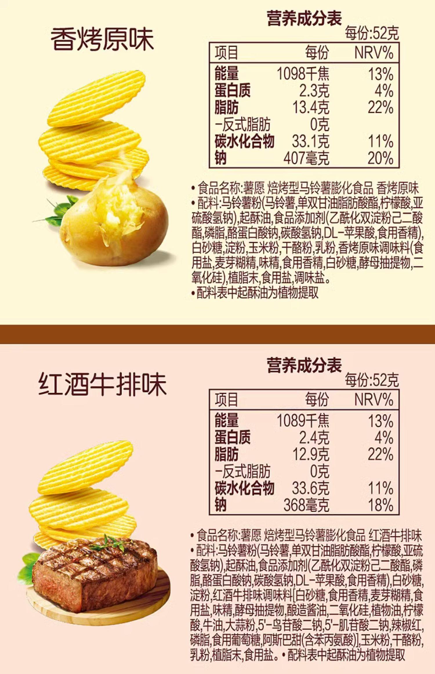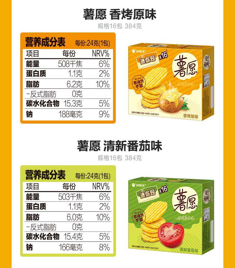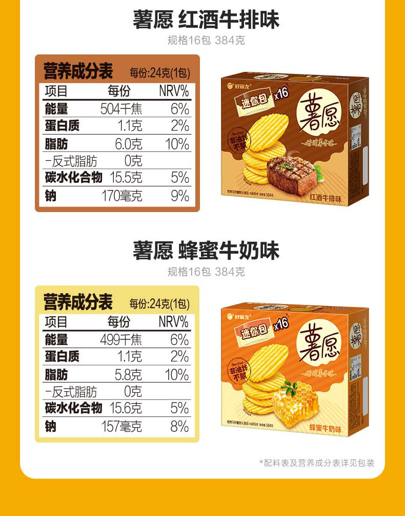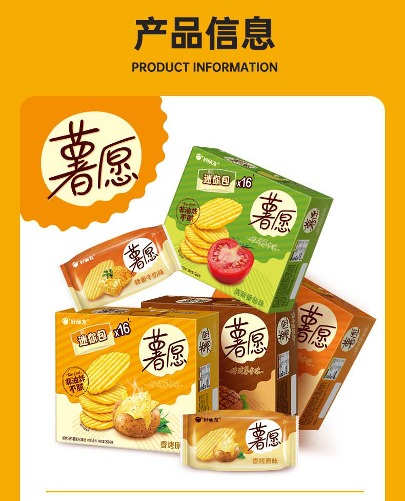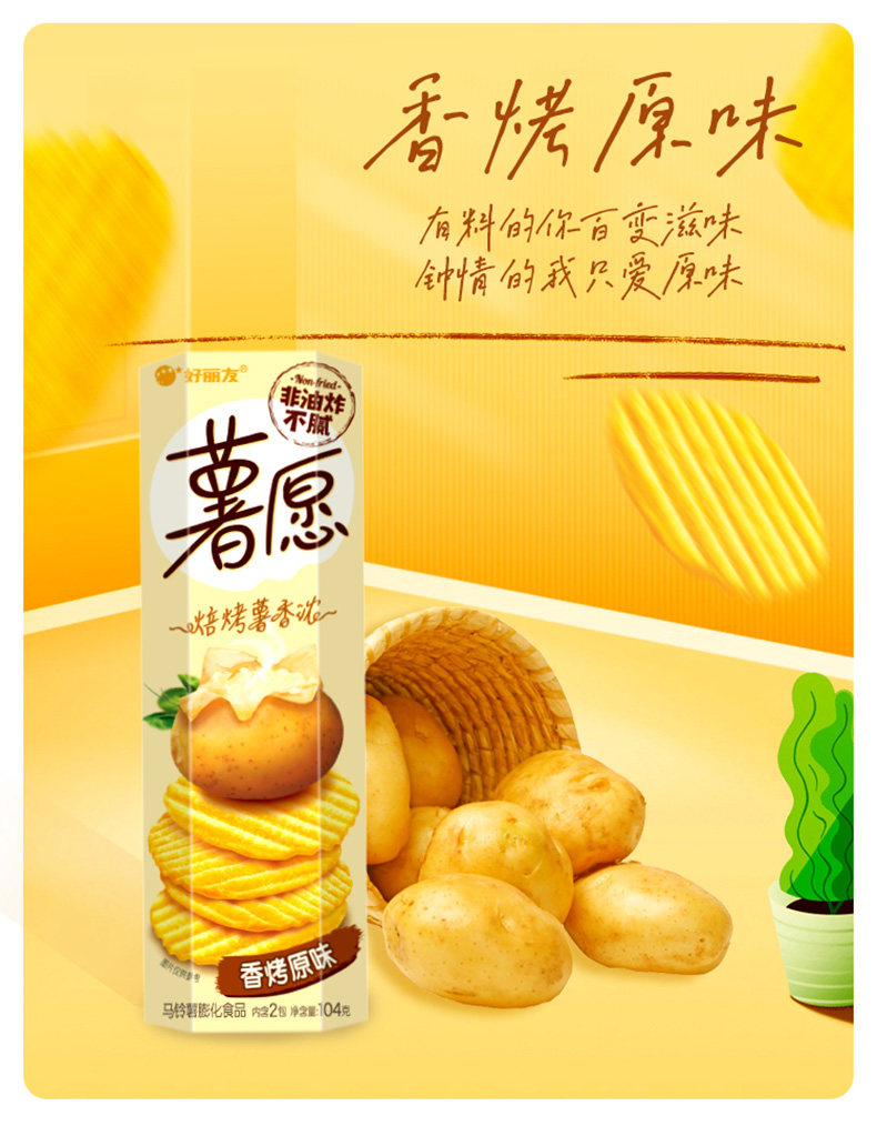 好丽友薯愿薯片碳烤土豆片蜂蜜牛奶味104g/盒