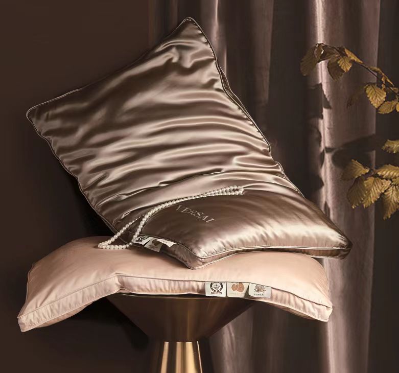 【6F】富安娜 云绫纱蚕丝夹心枕/诺里斯,74*48,浅咖