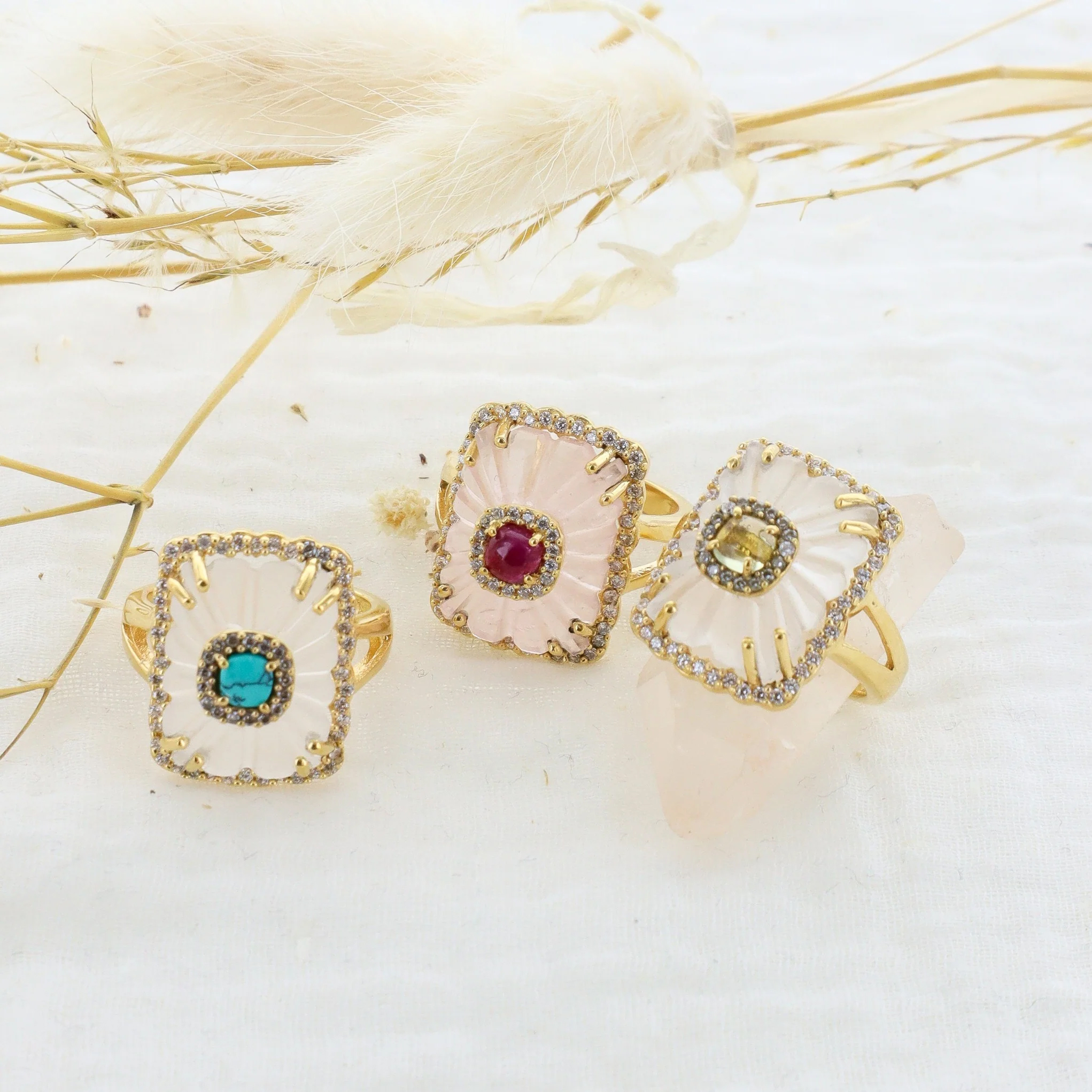 北京仓|Leticia Ponti-Bague Julia-玫瑰色 石英石 水晶 戒指[法国设计师]
