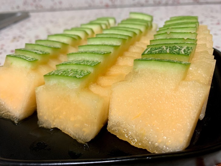 吃之前觉得这不就是小号的哈密瓜么?实际吃起来呢就是特别甜的哈密瓜,中间的瓤水分十足,也很好吃,但是吃完有点齁。瓜肉软软的,我家宝宝也爱吃。