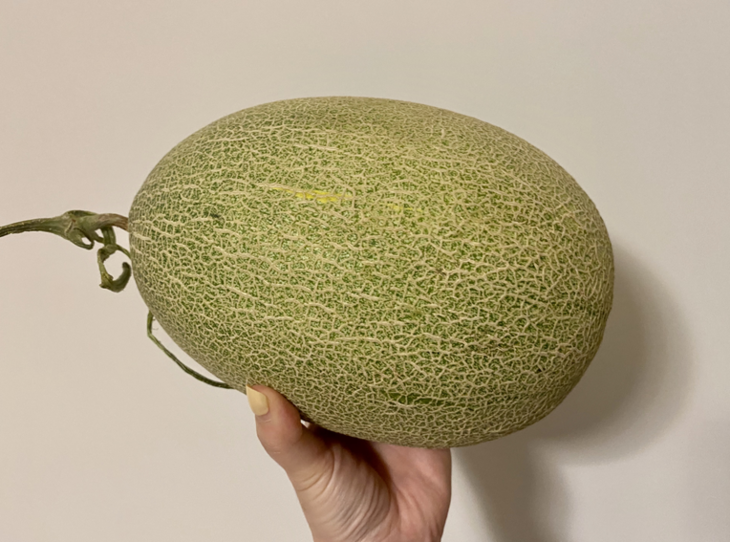 这个大小的瓜家里3-4人一次性吃完刚刚好,不像大哈密瓜吃不完还得塞冰箱里,特别占地方,而且冰过的瓜口感不一样,放着也容易滋生细菌。吃完这个瓜,我立马又买了个哈密瓜,结果天差地别,哈密瓜非常脆硬,几乎不甜,大概是个“幼年哈密瓜”。