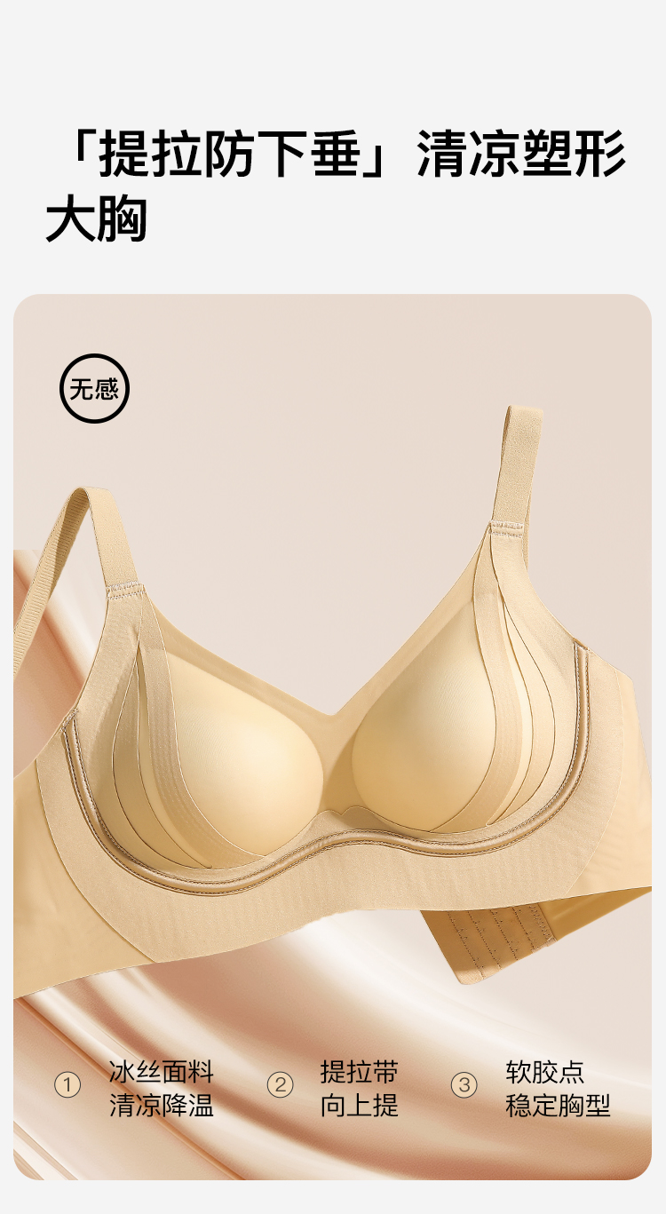 【隐形粉底肤】内衣女反重力提拉聚拢大胸防下垂收副乳无钢圈文胸月音知梦