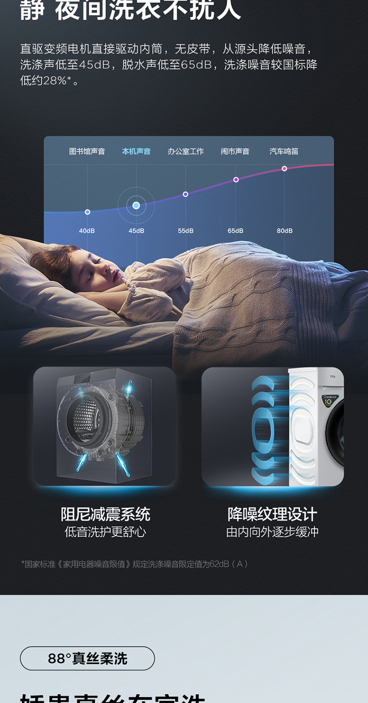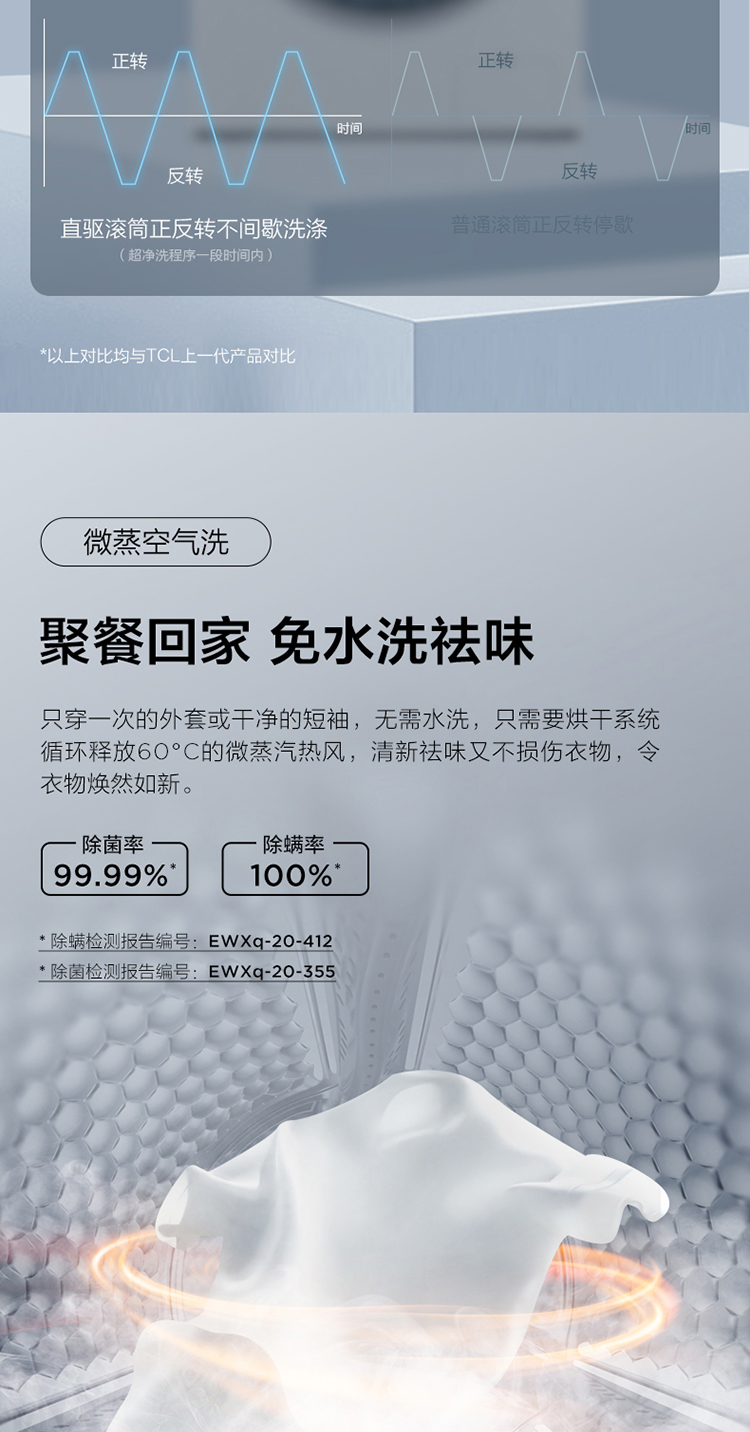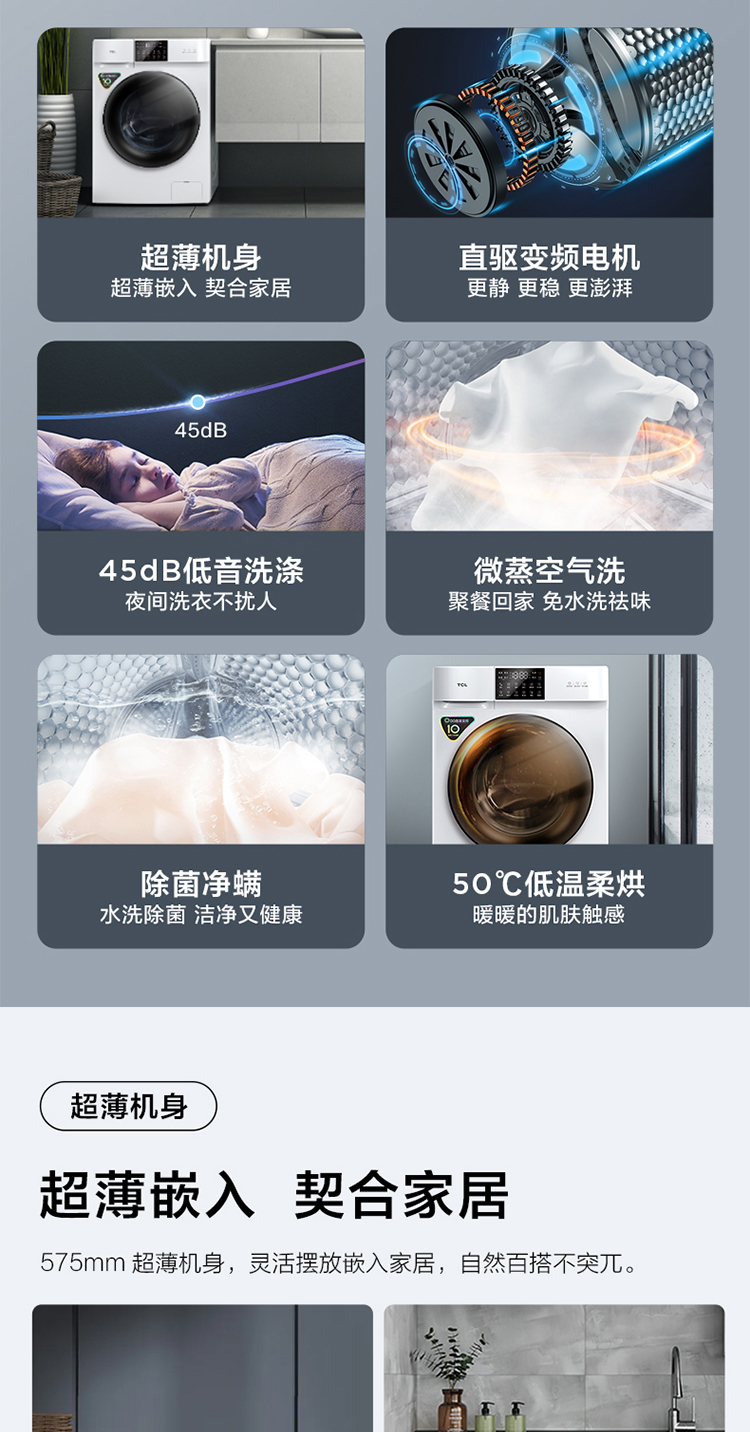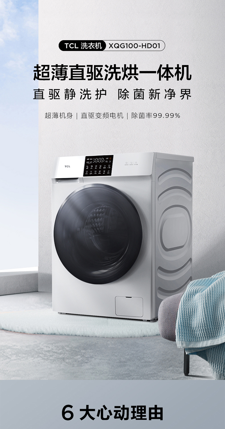 【TCL洗衣机】TCL 10KGDD直驱G100变频滚筒洗衣机洗烘一体 XQG100-HD01