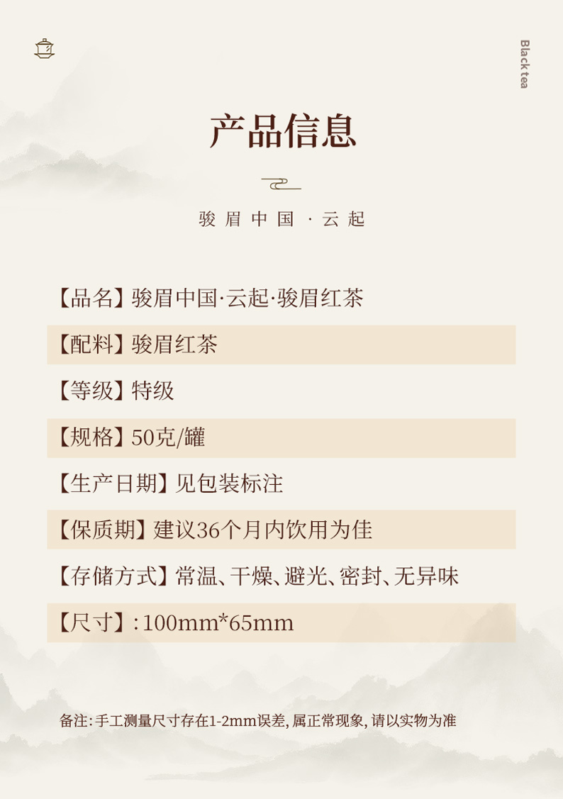 正山堂骏眉中国 云起 红茶特级蜜甜带花果香 十大经典产区茶叶50g