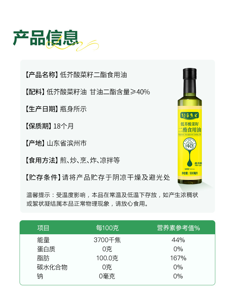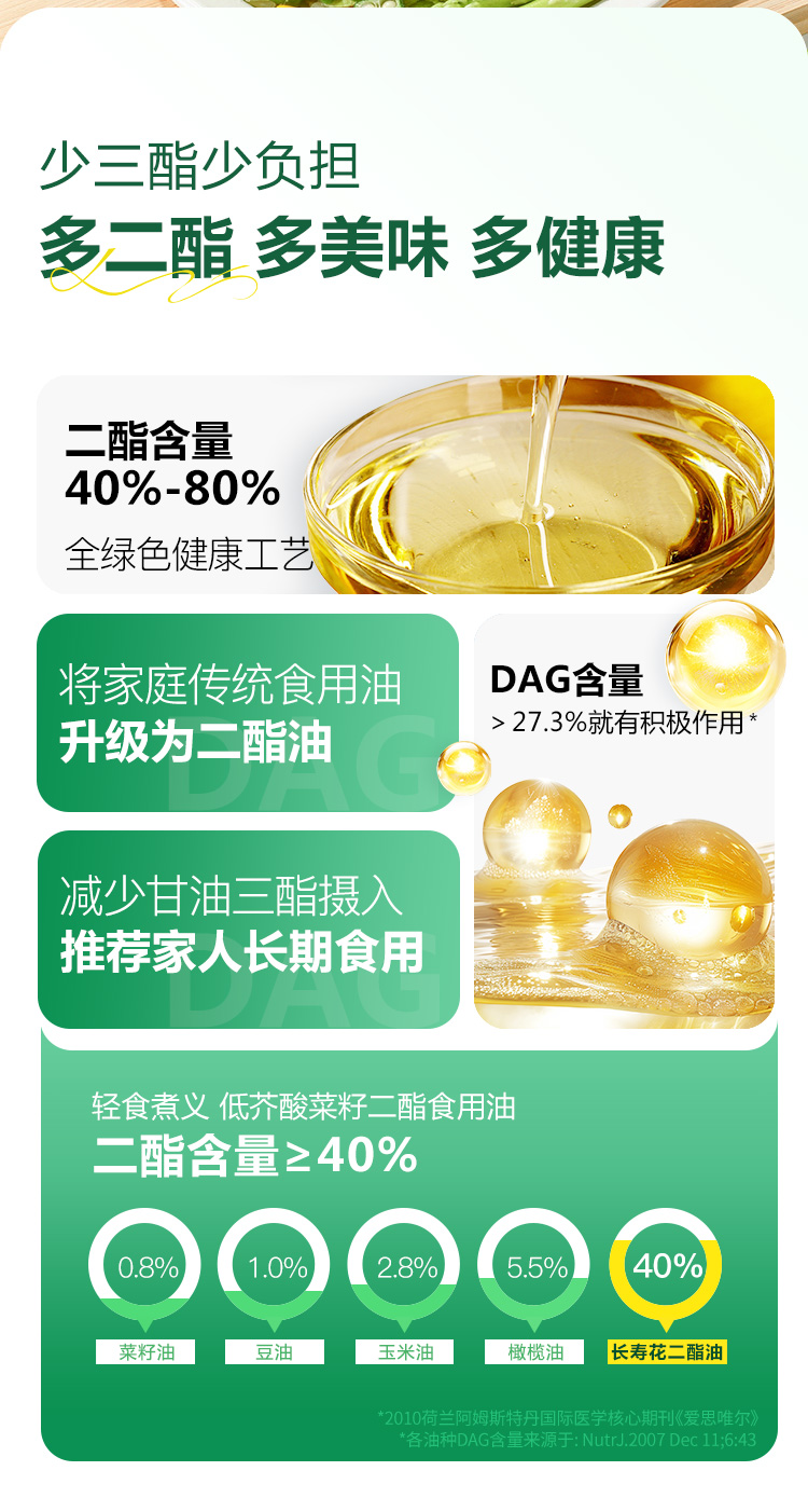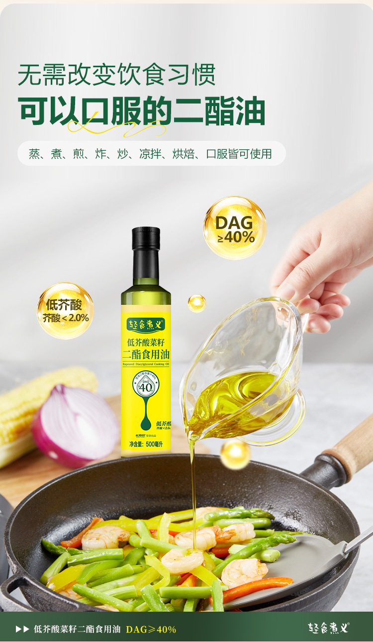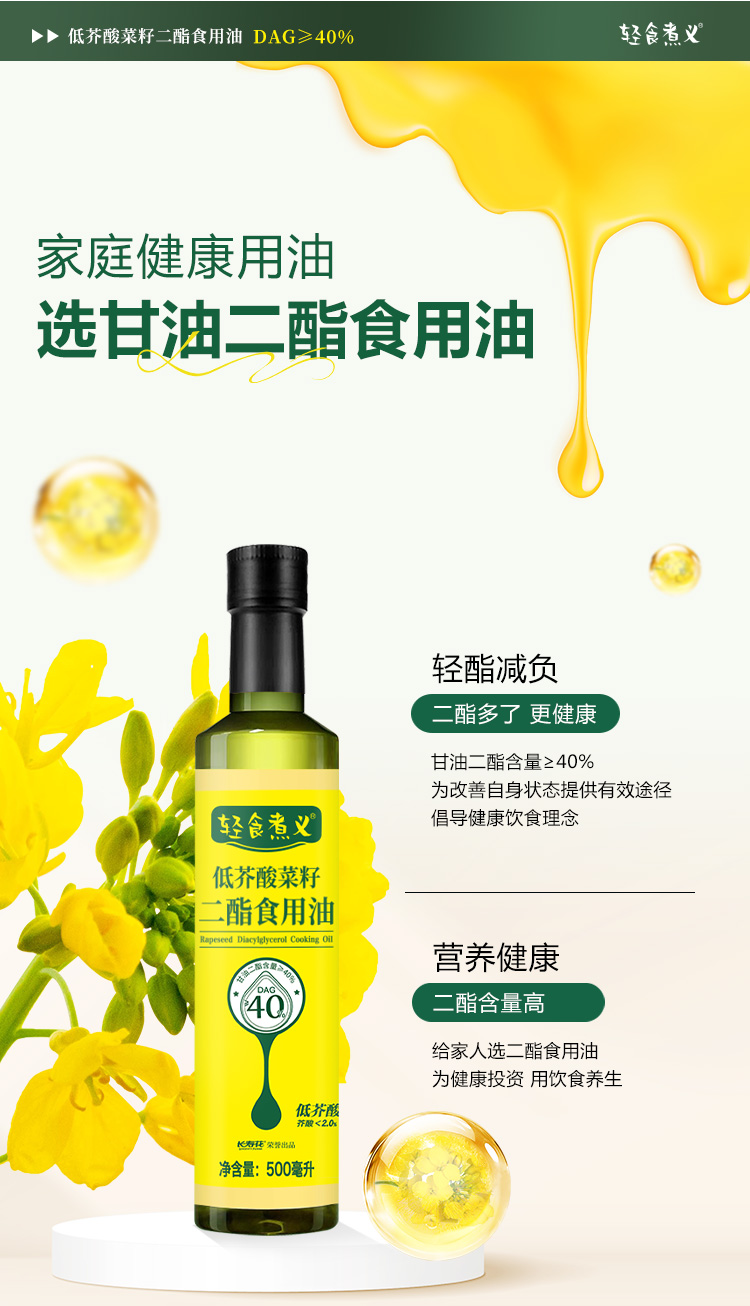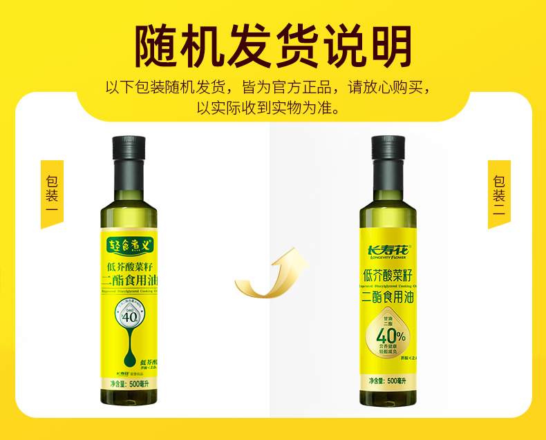 长寿花轻食煮义甘油二酯食用油40%菜籽*2瓶