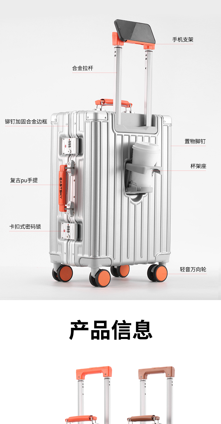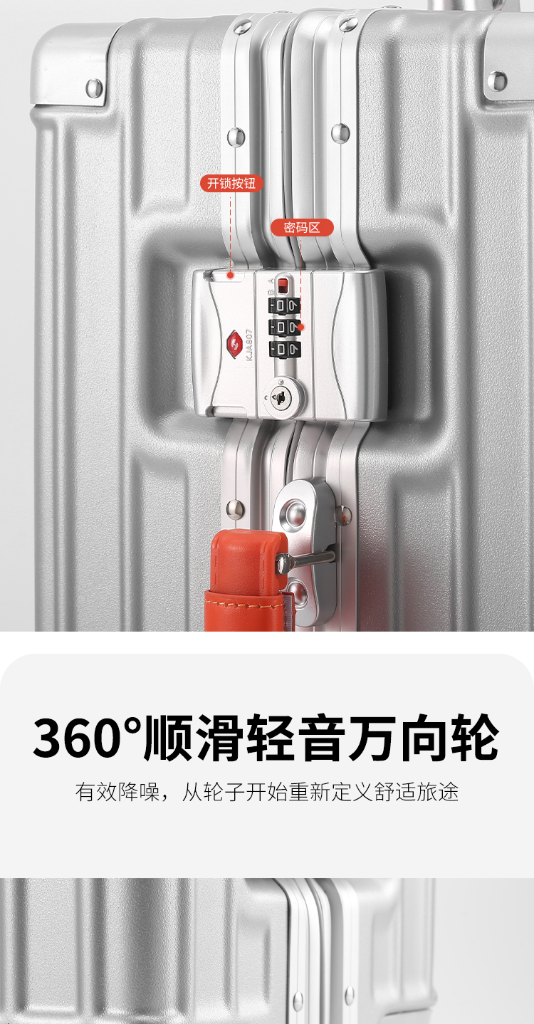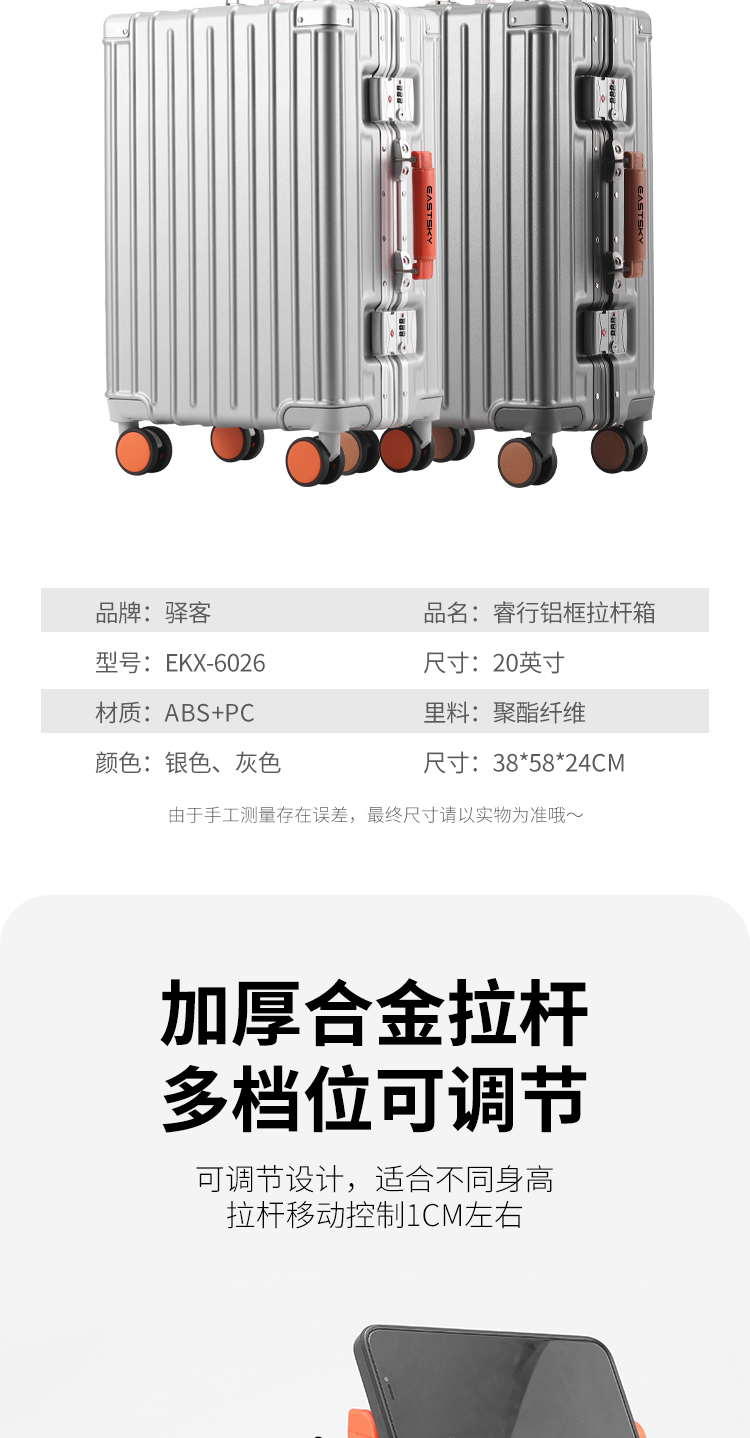 驿客睿行铝框拉杆箱20英寸 EKX-6026银色/灰色