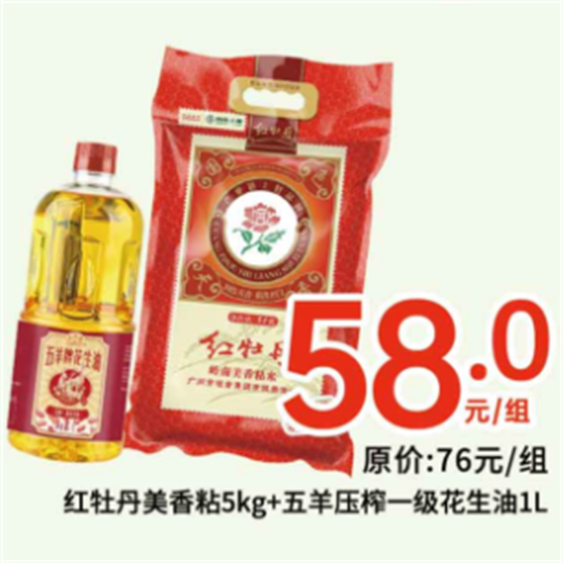 红牡丹美香粘5kg+五羊压榨一级花生油1L