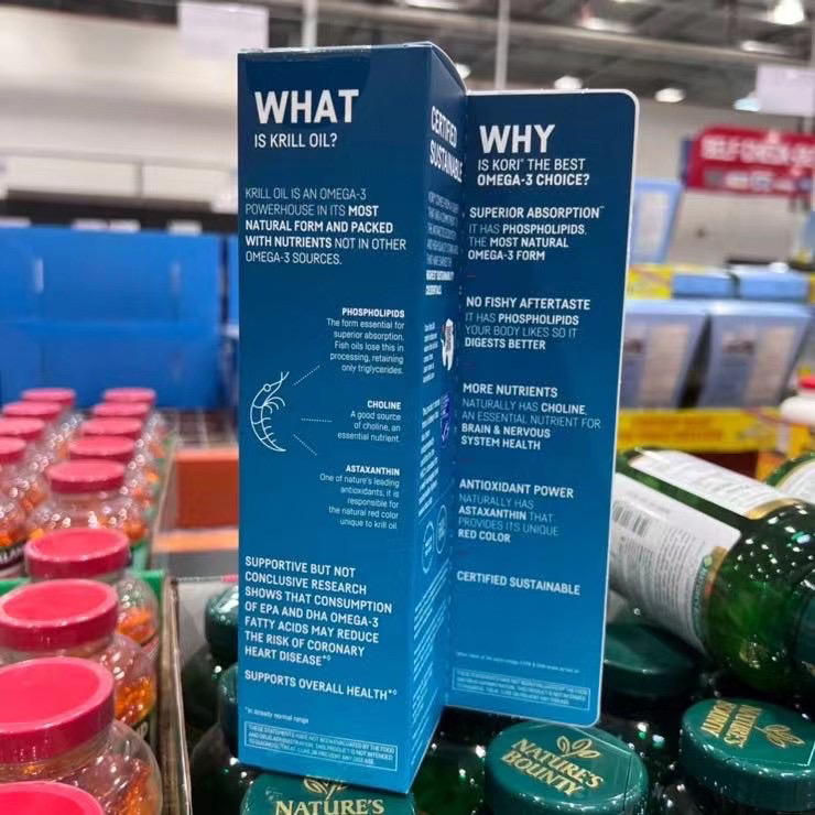 📣非常好的一款保养品上新!!KORI纯大西洋非转基因南极磷虾油omega-3,800mg 90粒,299元/瓶✈️主要功效:心脏健康,血管更通畅➡️含800mg 磷虾油,是纯大西洋磷虾油,而且基本没有鱼腥味👍,这个磷虾油吸收力很好,除了对心脏好之外对脑部和神经系统健康也有帮助💪💪💪,而且能很好的抗氧功效。磷虾油已经临床证明可以提高OMEGA-3,还是非转基因食品,很健康的一款营养品⚠️一天一粒