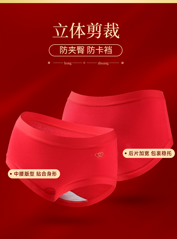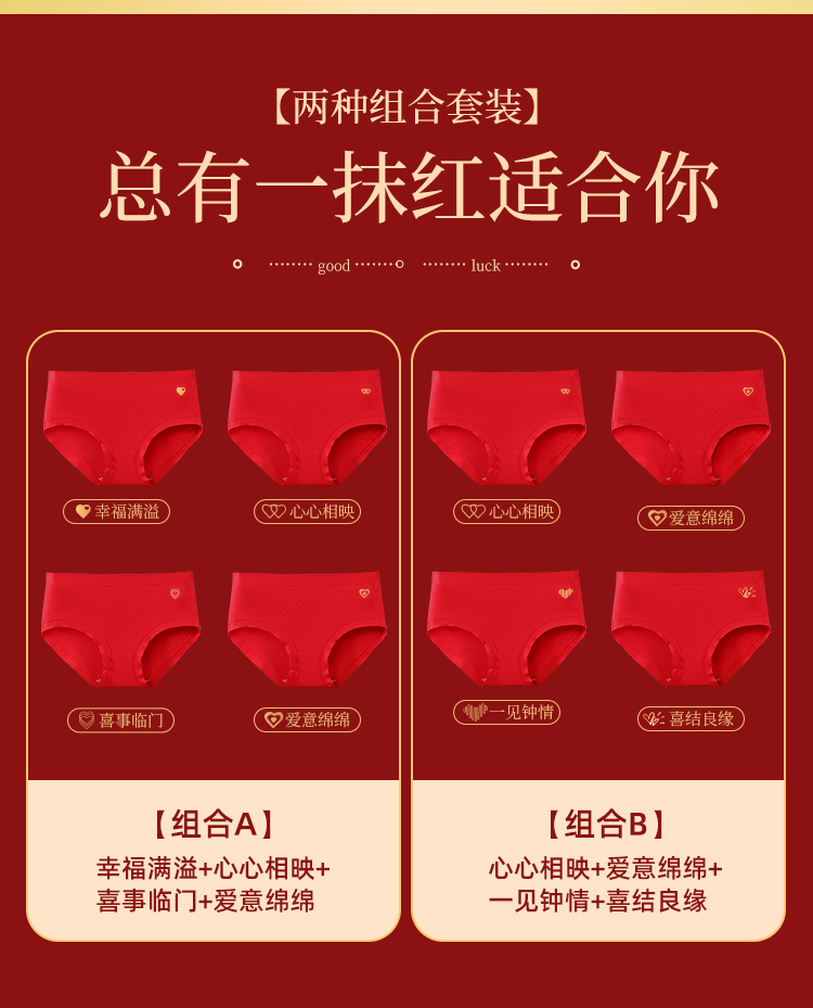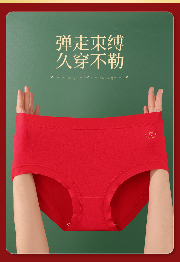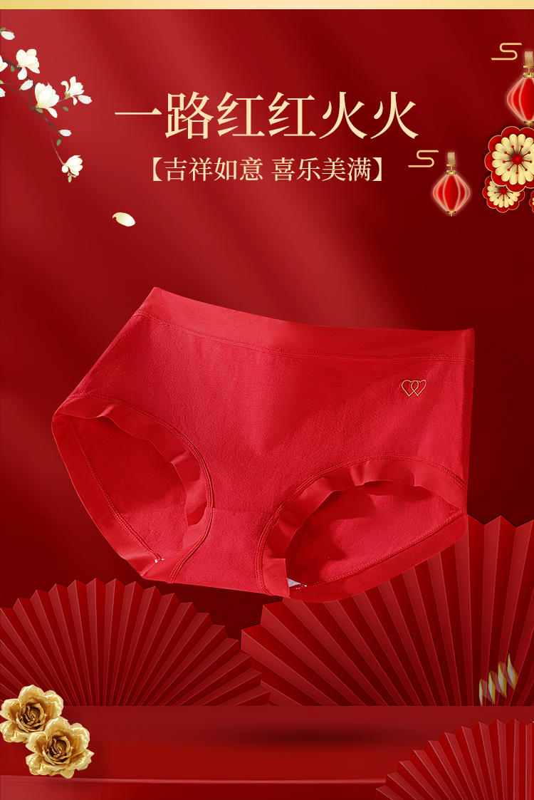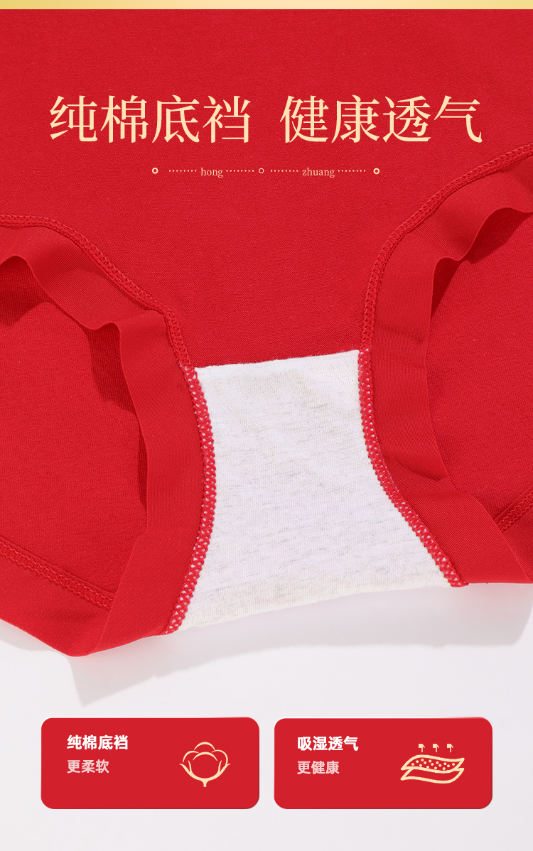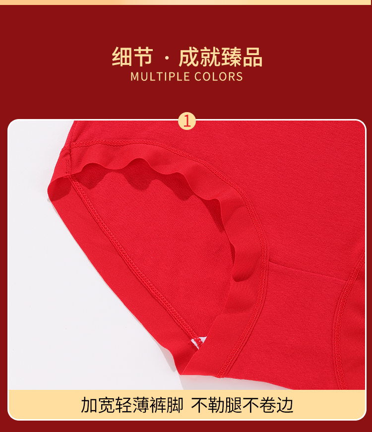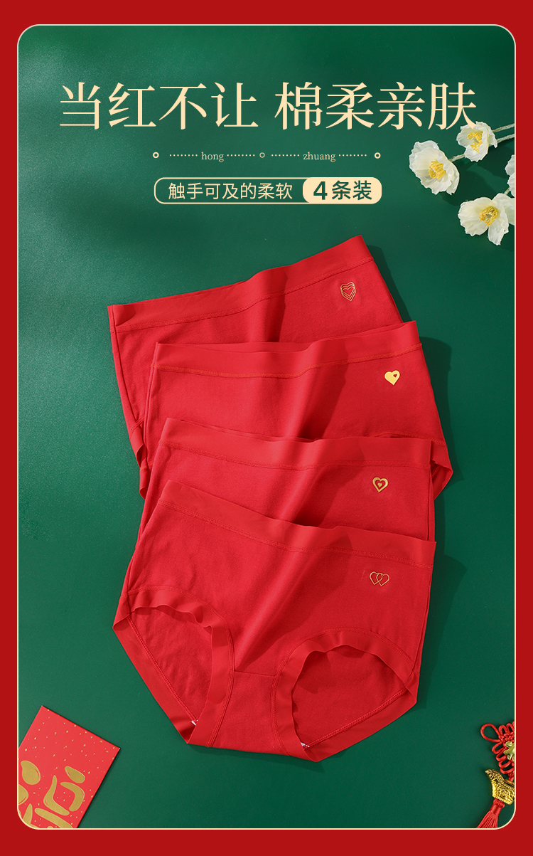 雅黛丽女士纯棉三角裤本命年大红色内裤2025年蛇年结婚短裤四条装