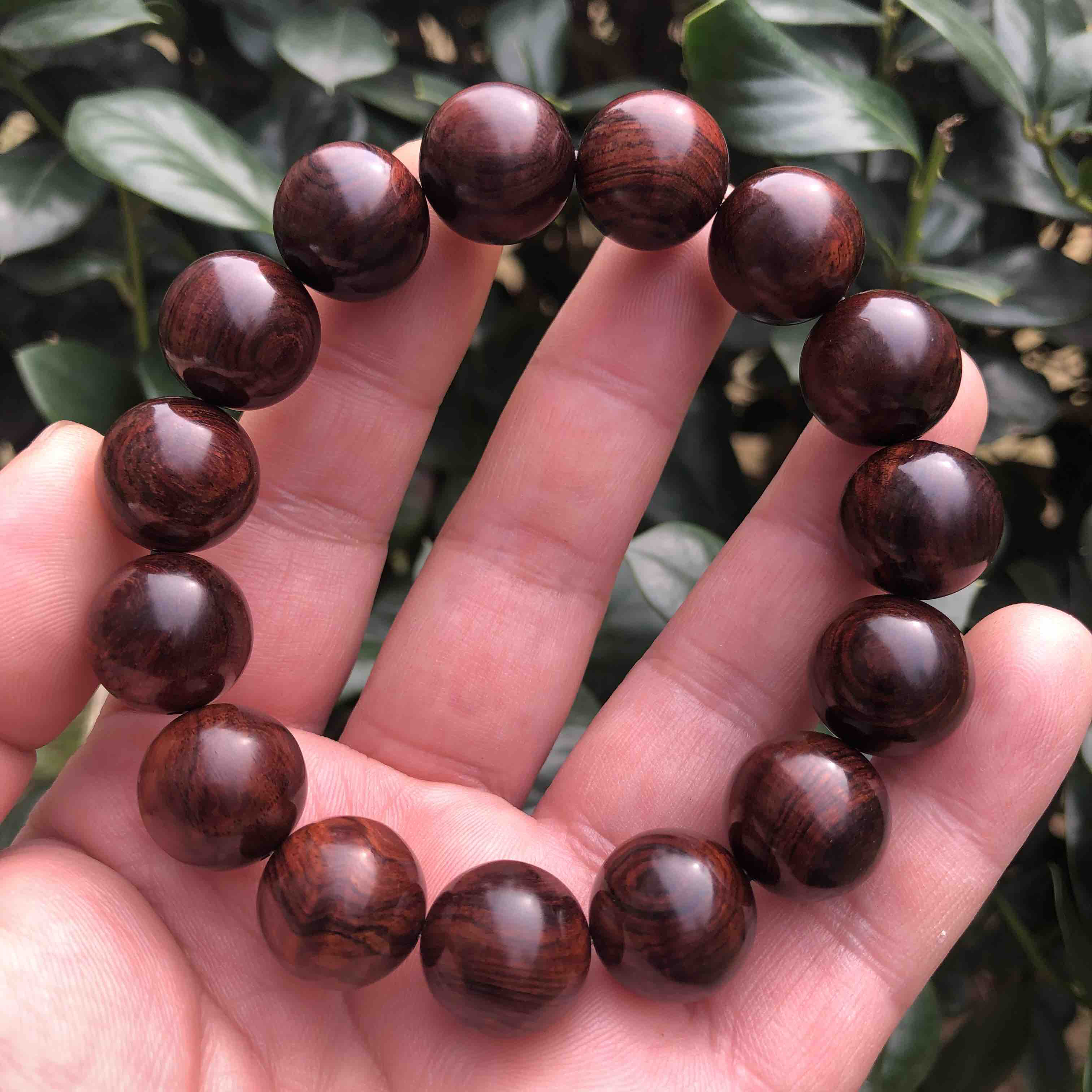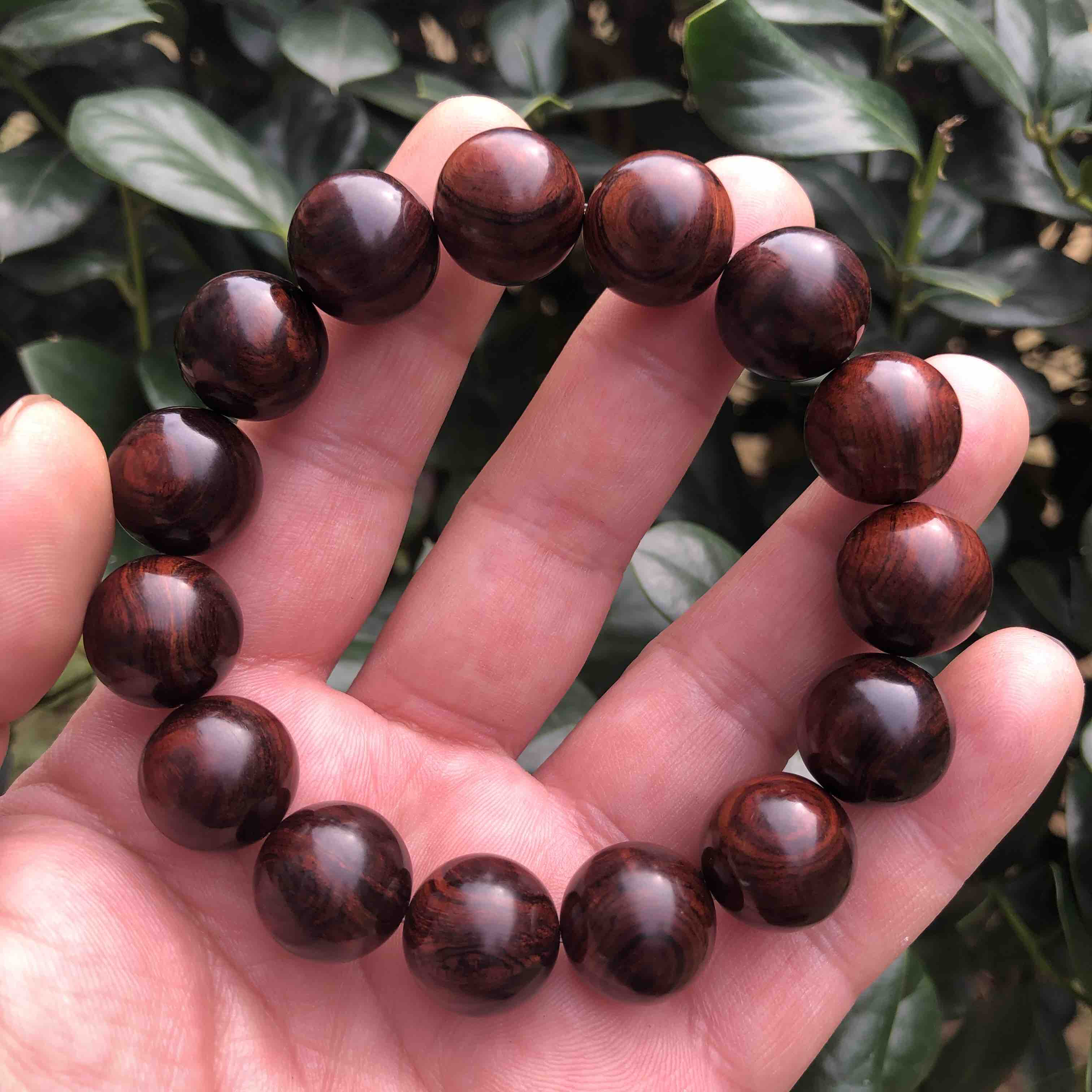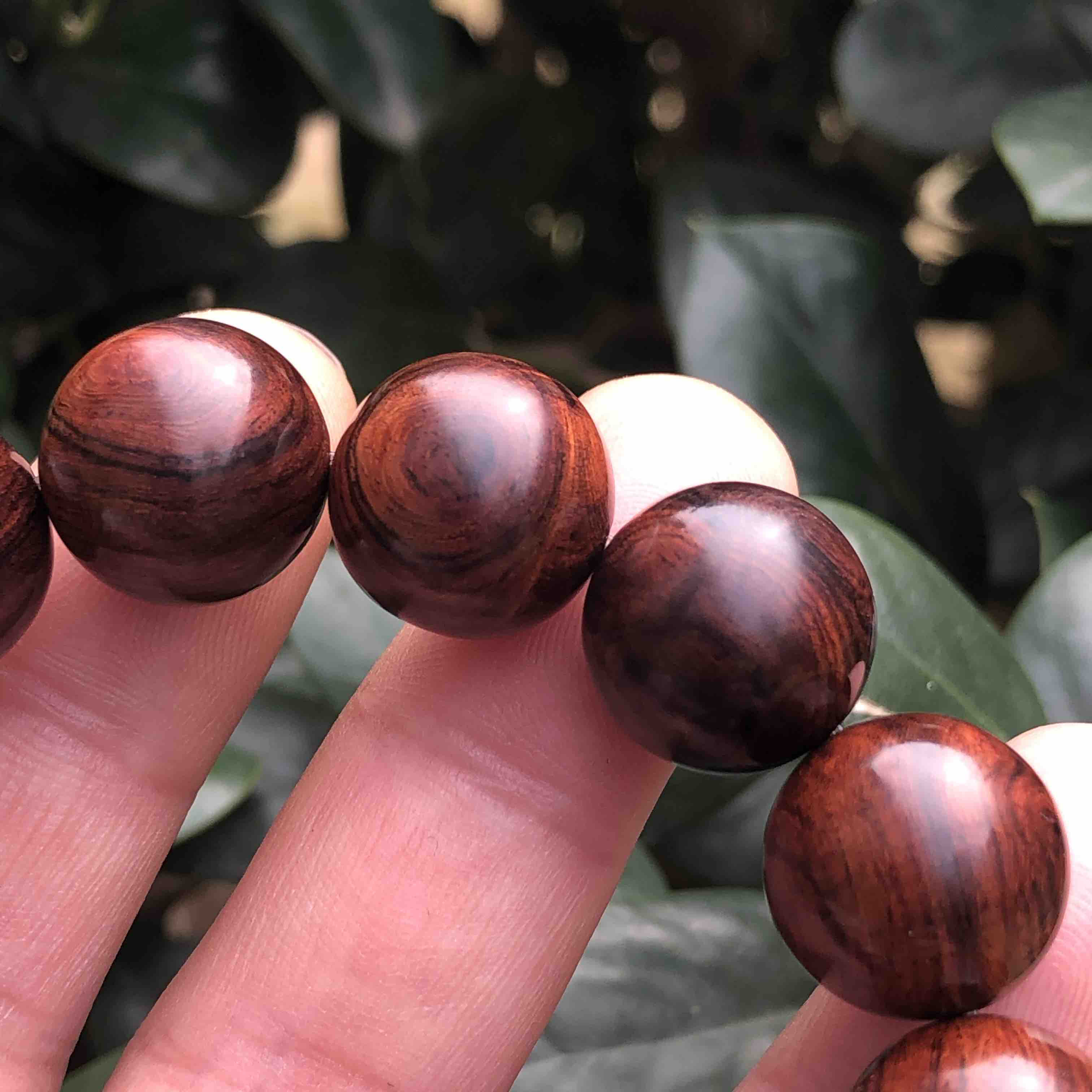 【青山特惠】1.5*15颗海南黄花梨紫油梨水波老料文玩手串h114