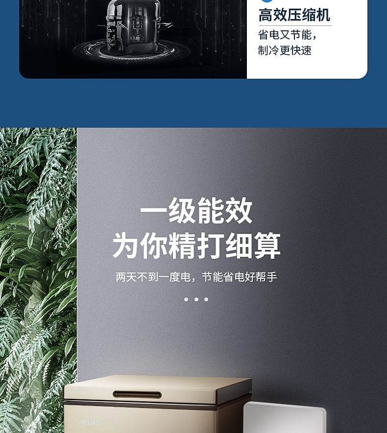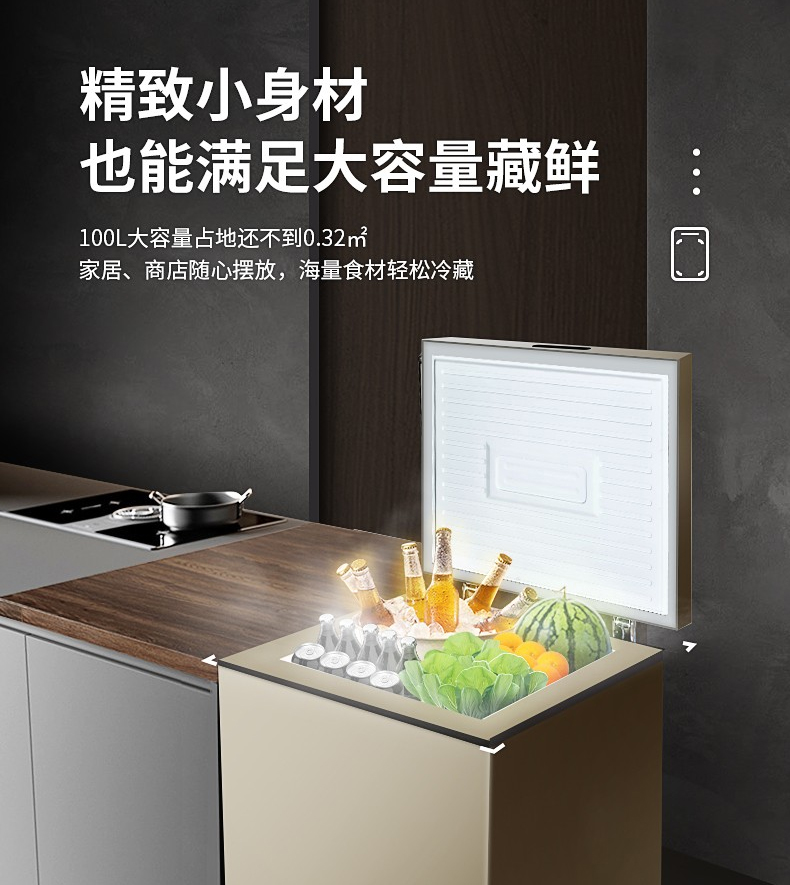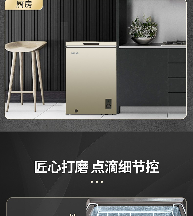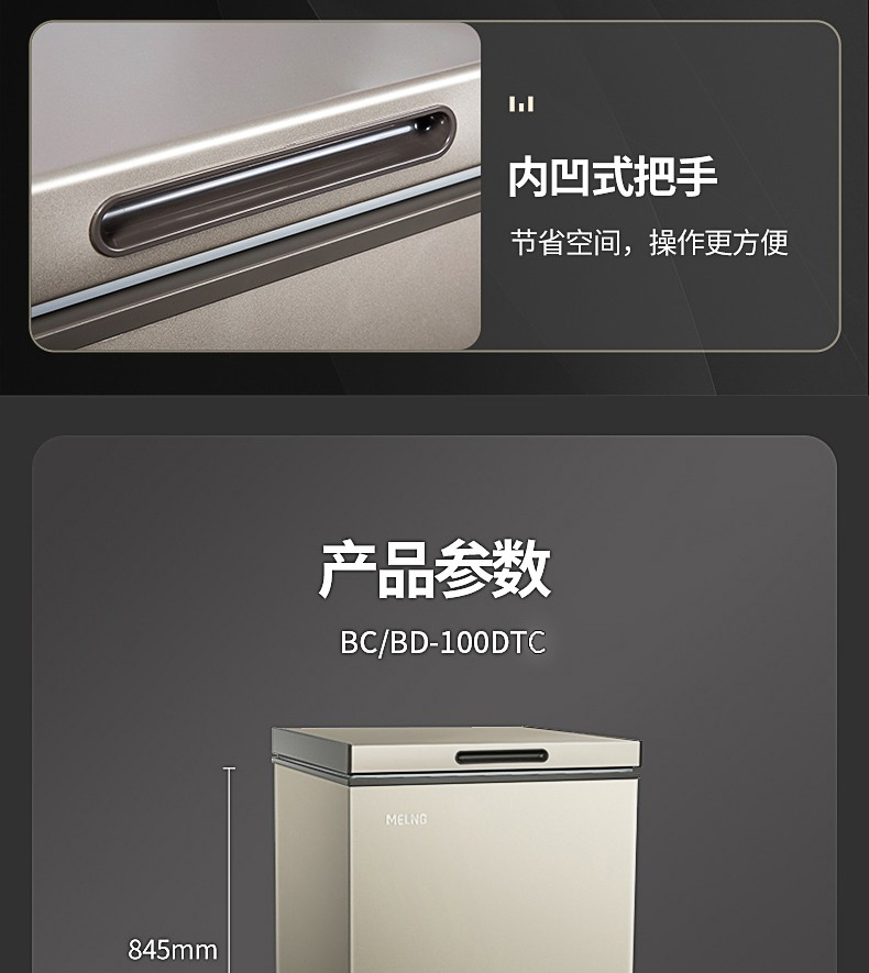 美菱100DTC冷柜 冷藏冷冻单温转换一级能效超薄嵌入式断电保护家用冰柜节能省电 BC/BD-100DTC