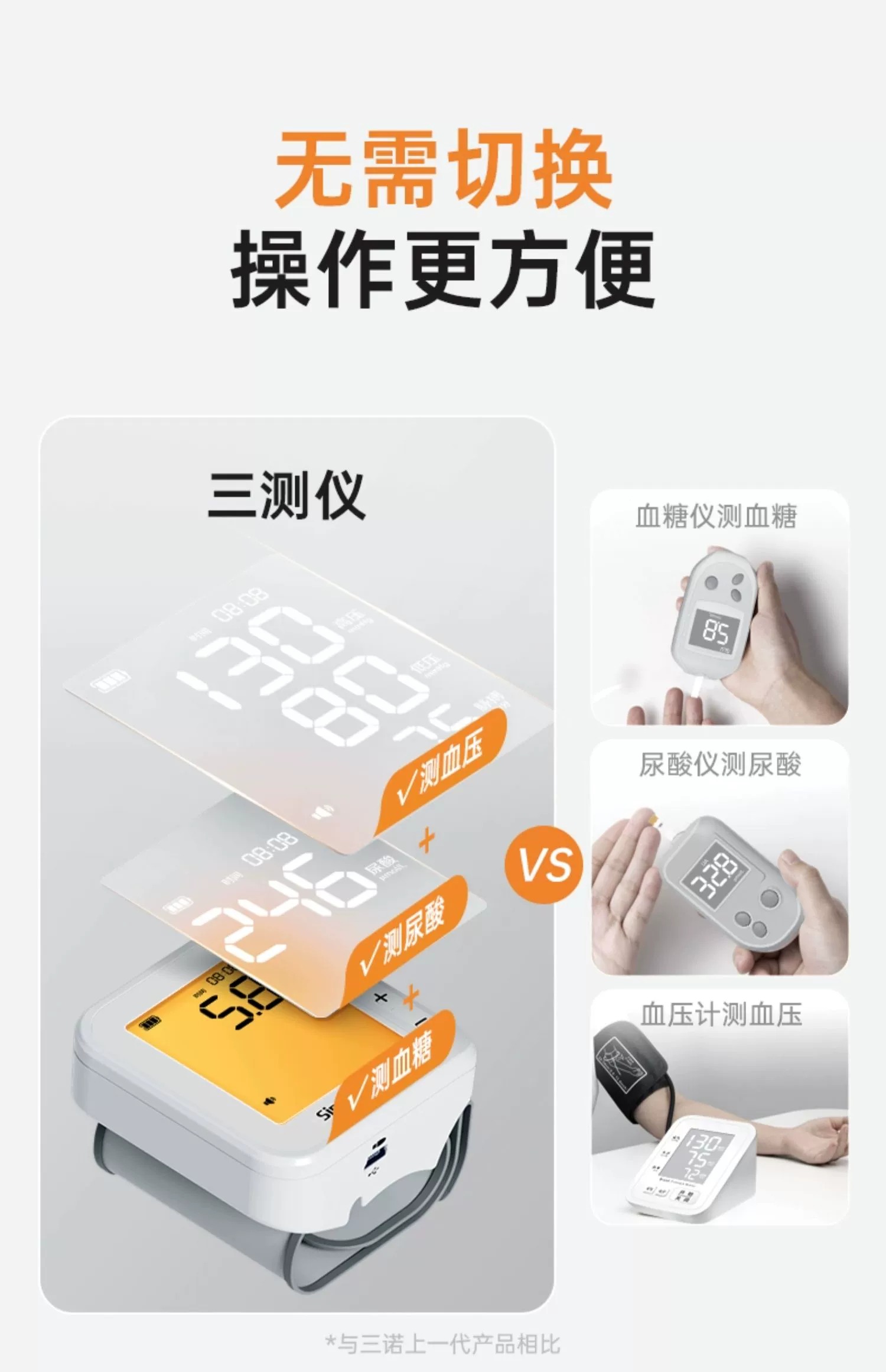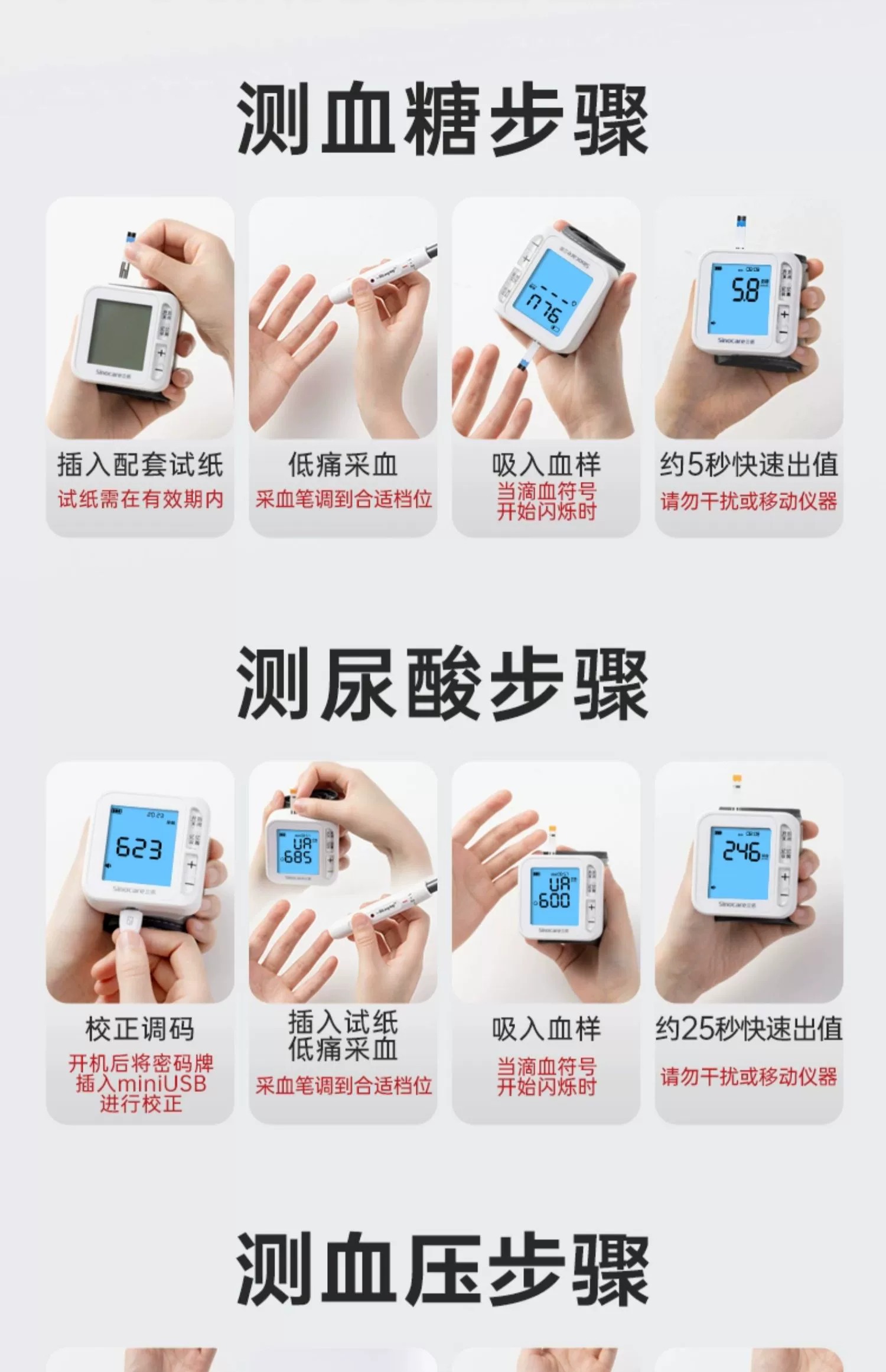 三诺血糖尿酸血压三测一体机测试仪