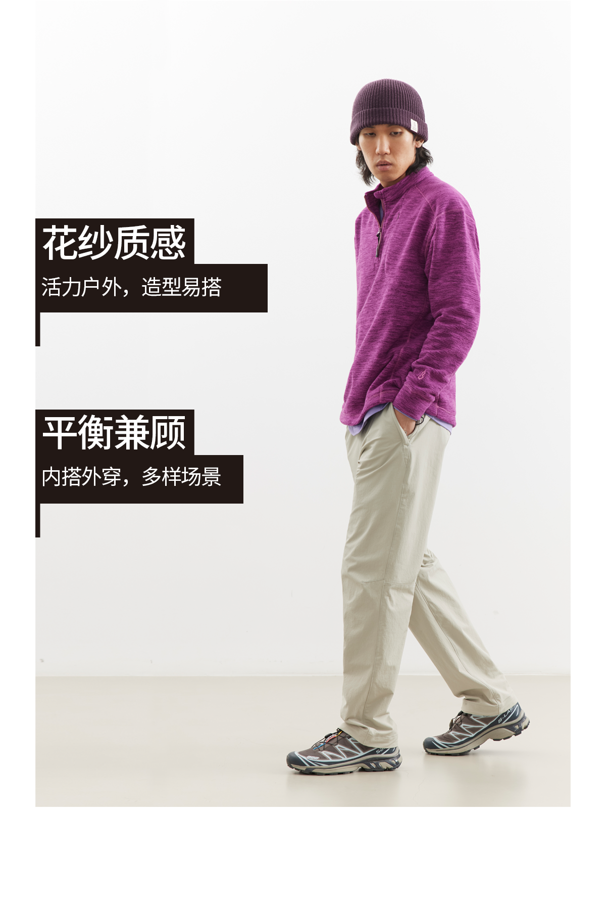 吃茶去chichaqu25中间层摇粒绒立领半拉链抓绒外套户外运动山系