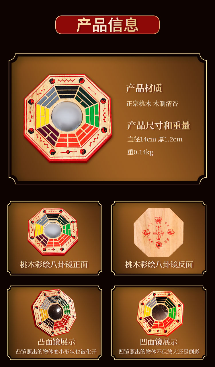 桃木彩绘凹凸乾坤镜