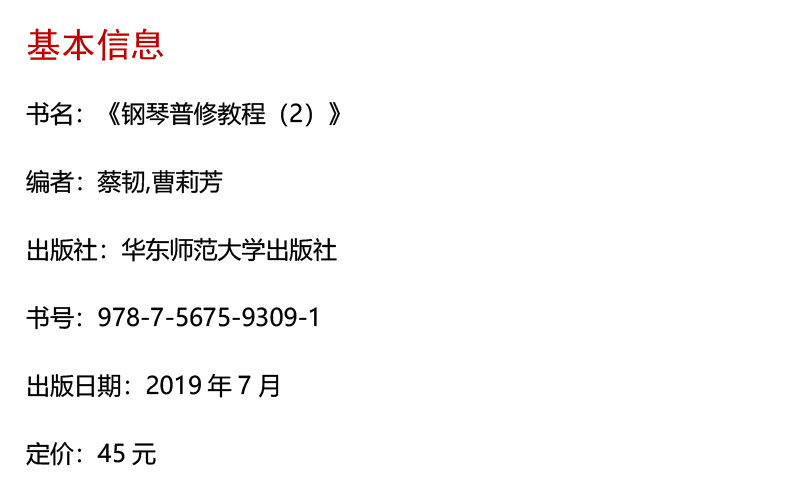 钢琴普修教程2 高等院校音乐通用教材 教案形式撰写 知识层递结构科学 钢琴练习曲钢琴基础知识