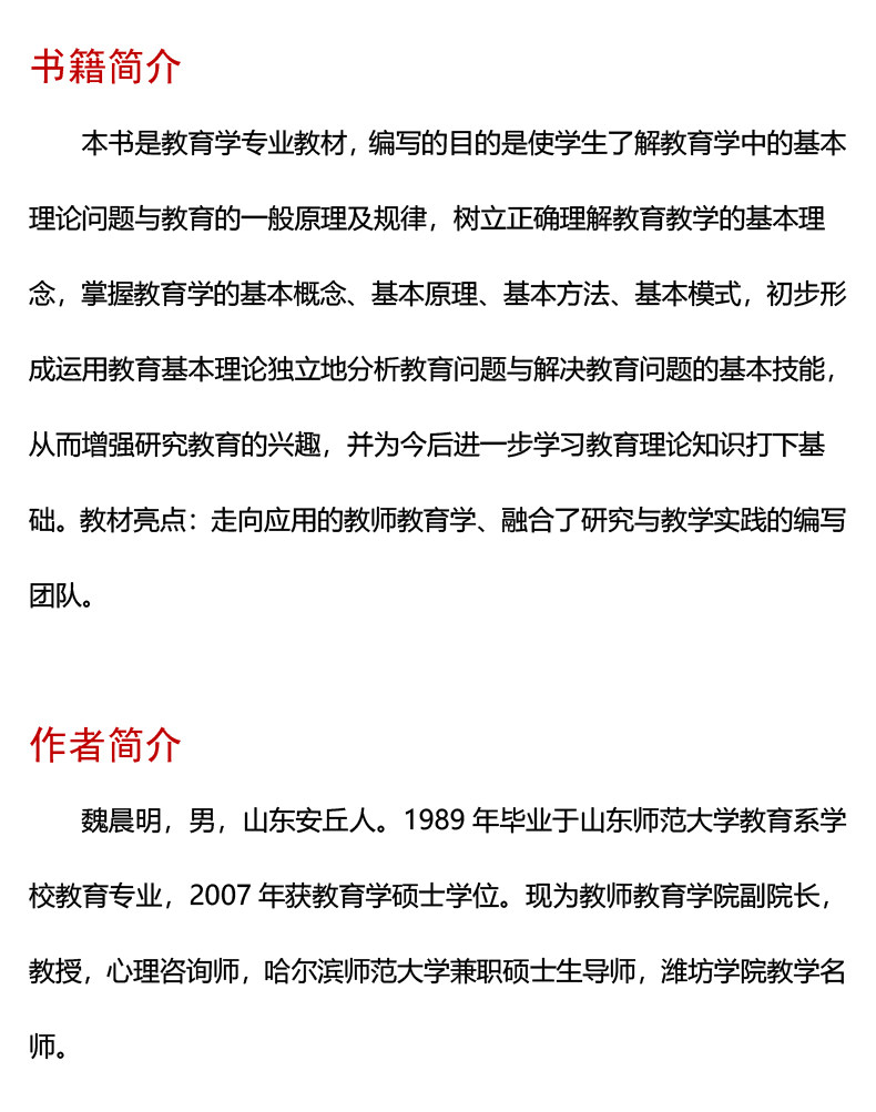教育学原理与应用 魏晨明 董守生 教育学专业教材
