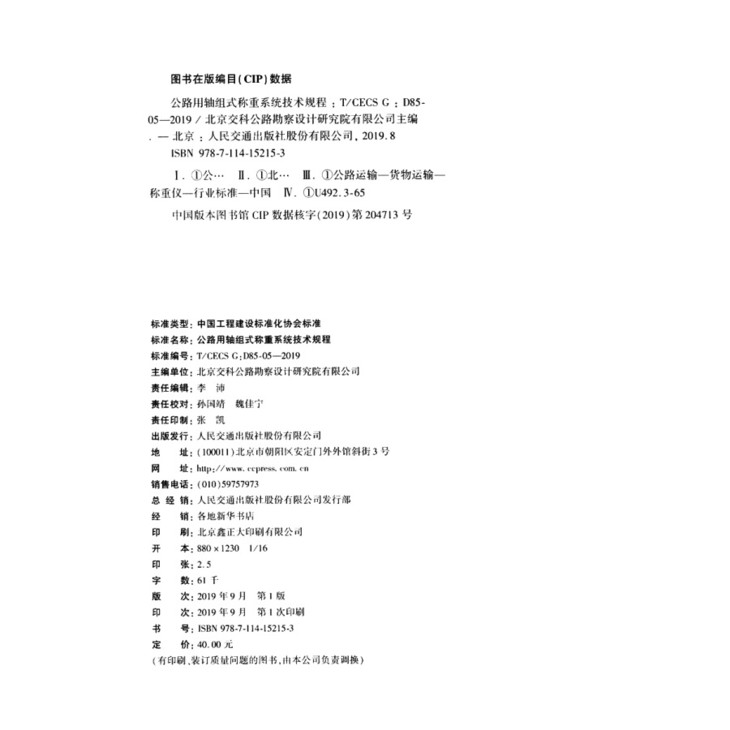 T/CECS G:D85-05—2019公路用轴组式称重系统技术规程