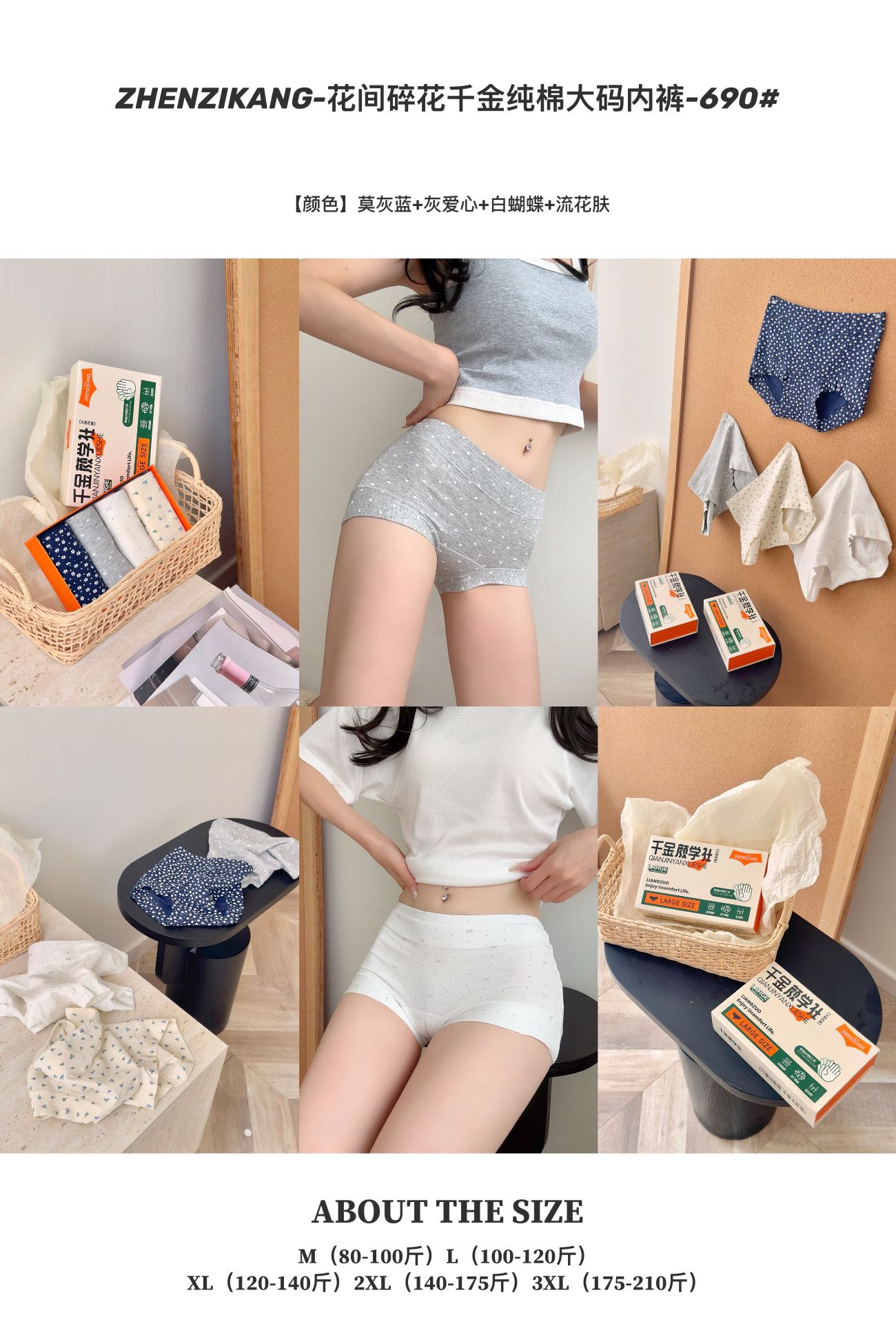 【品名】樱姿霞 花间碎花千金纯棉大码女士内裤 中腰舒适不挑身材 4条装 【规格】 莫灰蓝+爱心灰+白蝴蝶+流花肤 【尺码】M-3XL 【产地】国内 【材质】 面料:95%棉 5%氨纶 底档:100%棉 【发货包装】独立包装 【发货地】广东 【发货快递】中通 【补邮费地区】新疆、西藏+25元/单 【发货时效】48-72小时,周末节假日顺延 【特别提醒】因产品属于贴身衣物,非质量问题,拆封后是不支持退换的,敬请谅解~ |