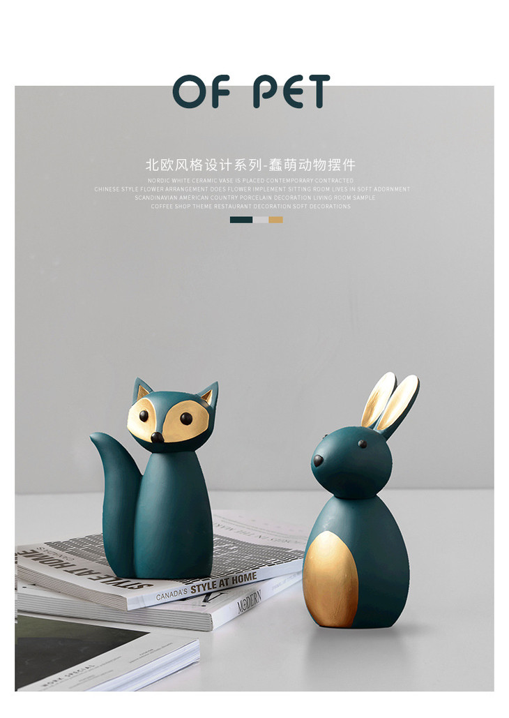 【装饰品】*北欧动物兔子小摆件树脂创意客厅样板房电视柜餐桌面家居软装饰品