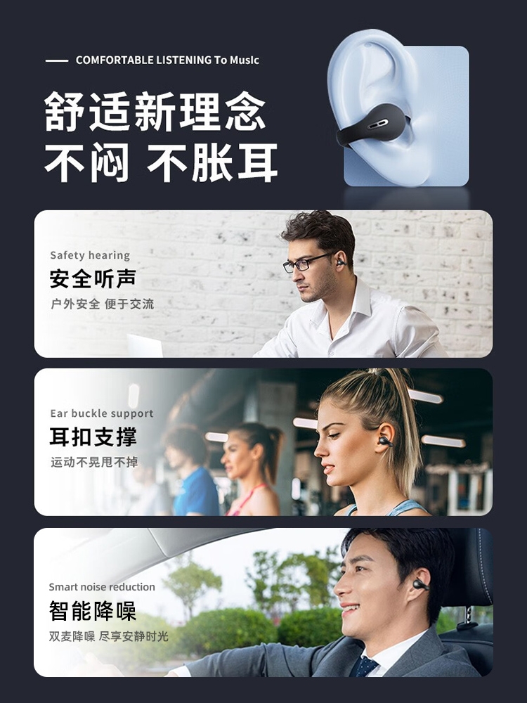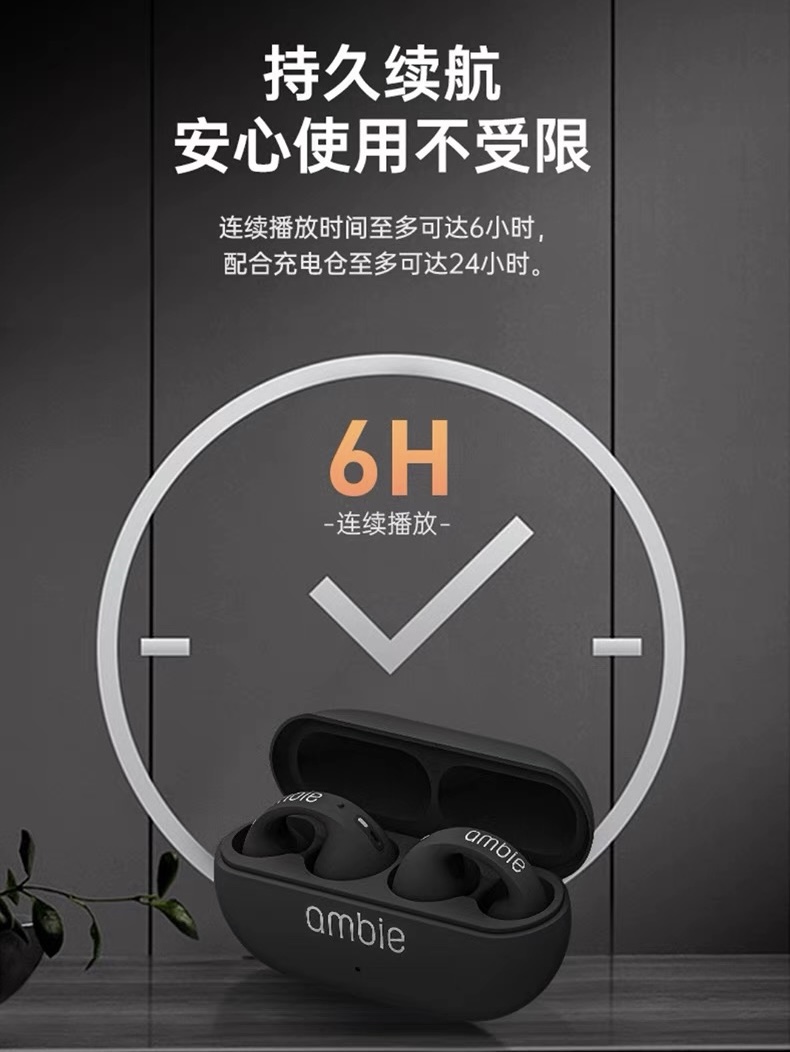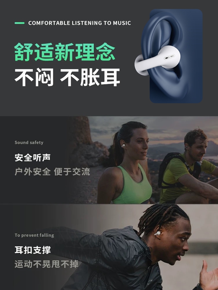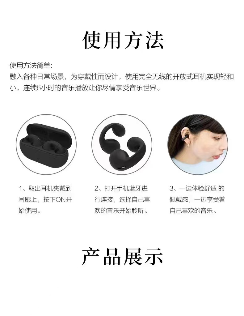 【未来感耳夹设计 佩戴舒适】索尼同款 骨传导耳机 蓝牙运动耳机 索尼ambie同款 360°均匀受力 定向传音 取出即连 设计简约 机身轻盈小巧