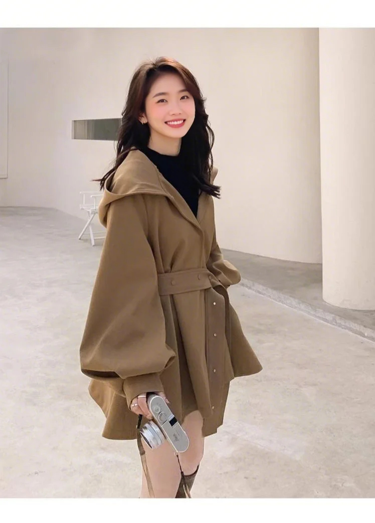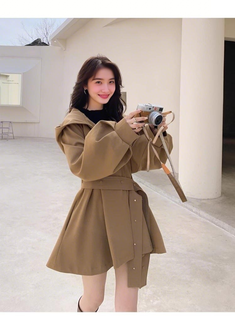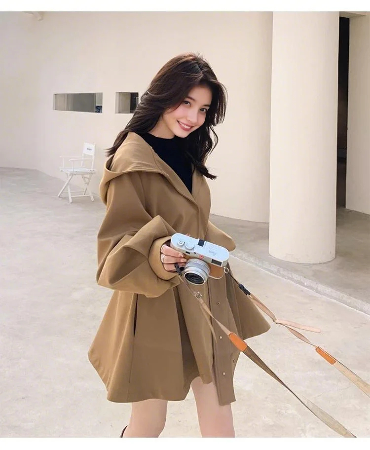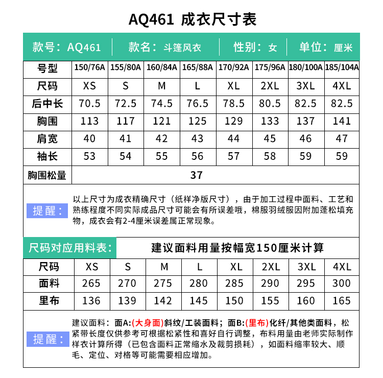裁缝学苑AQ461赫本斗篷风衣纸样女装新款工装大衣连帽短外套上衣样板