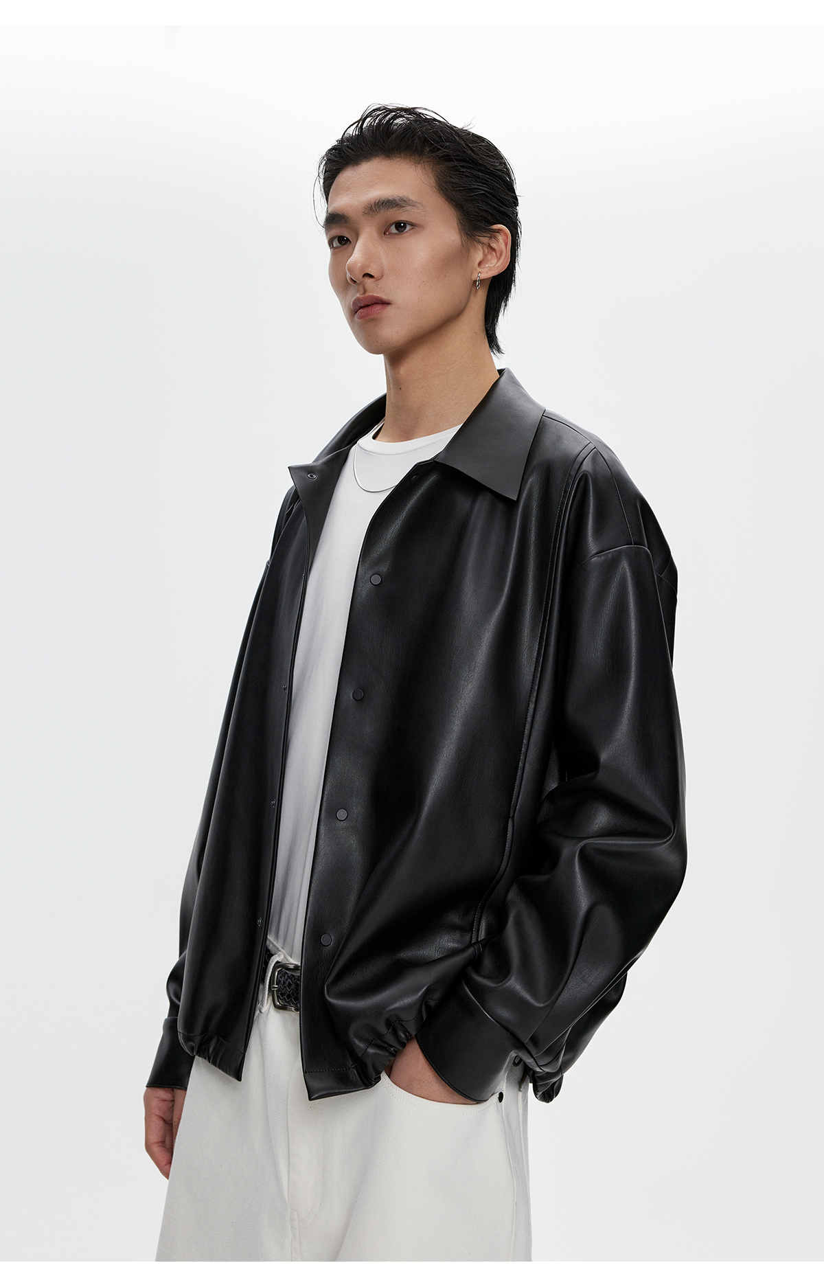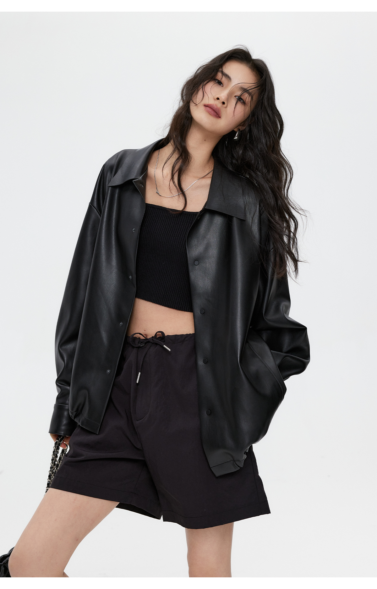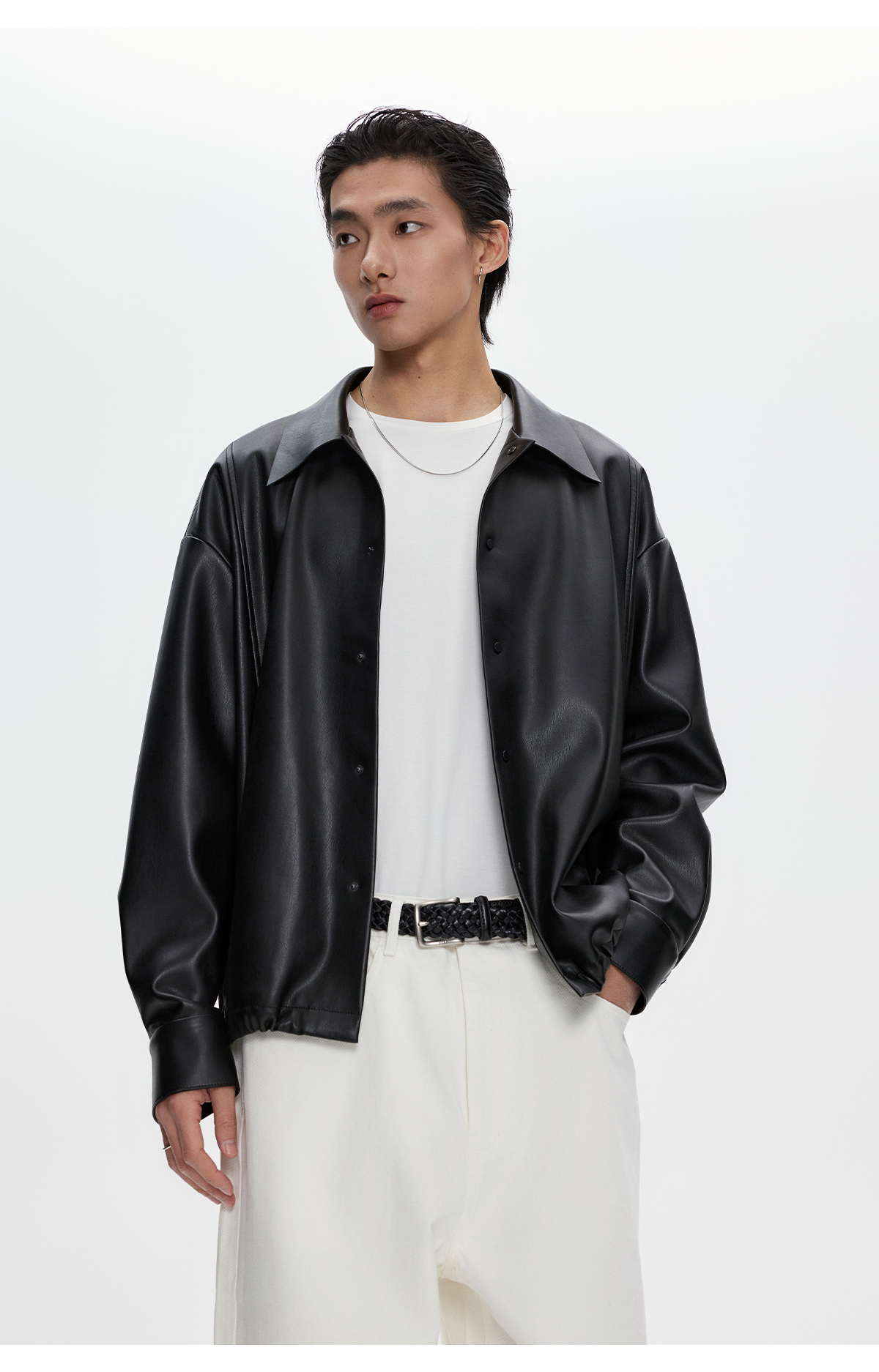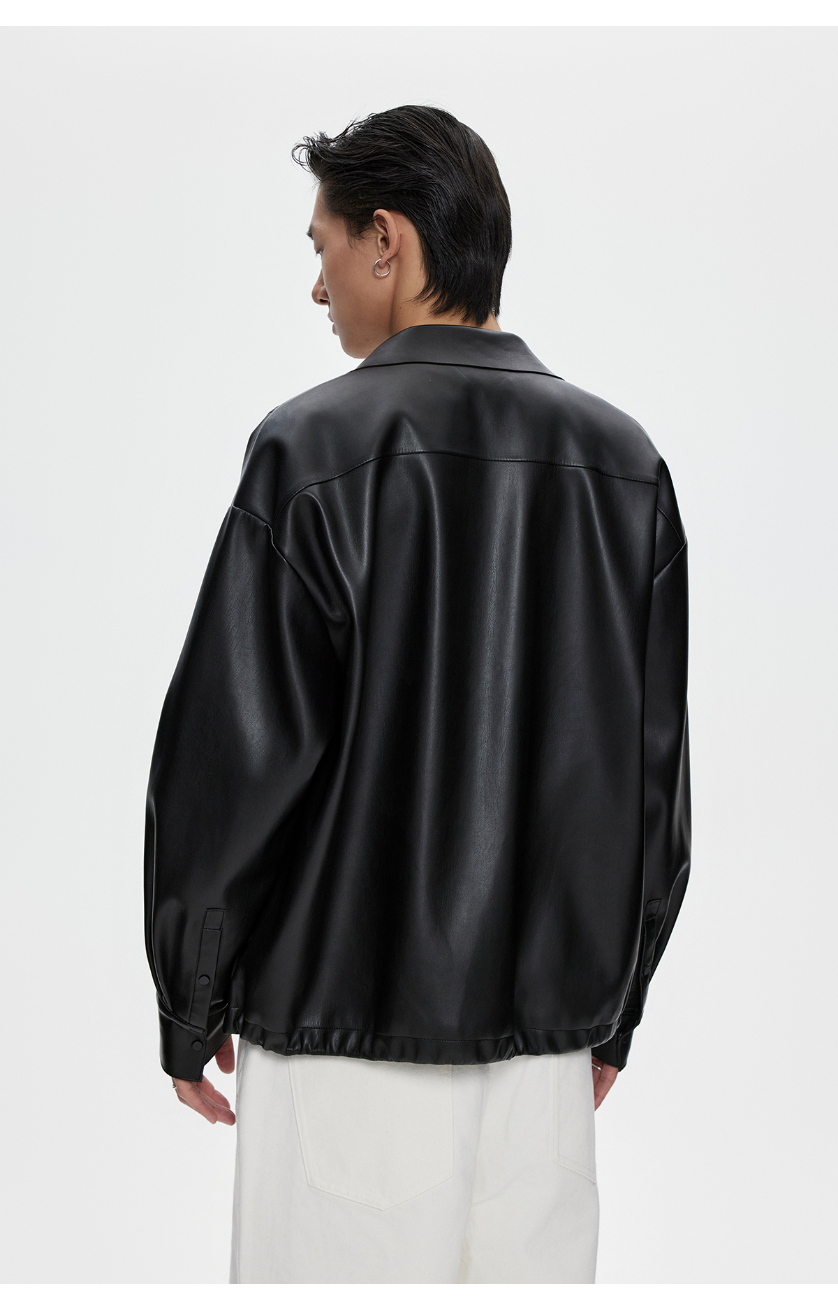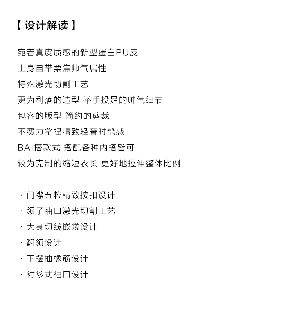 棉仓3461027002-蛋白PU皮翻领JI简设计衬衫式夹克外套