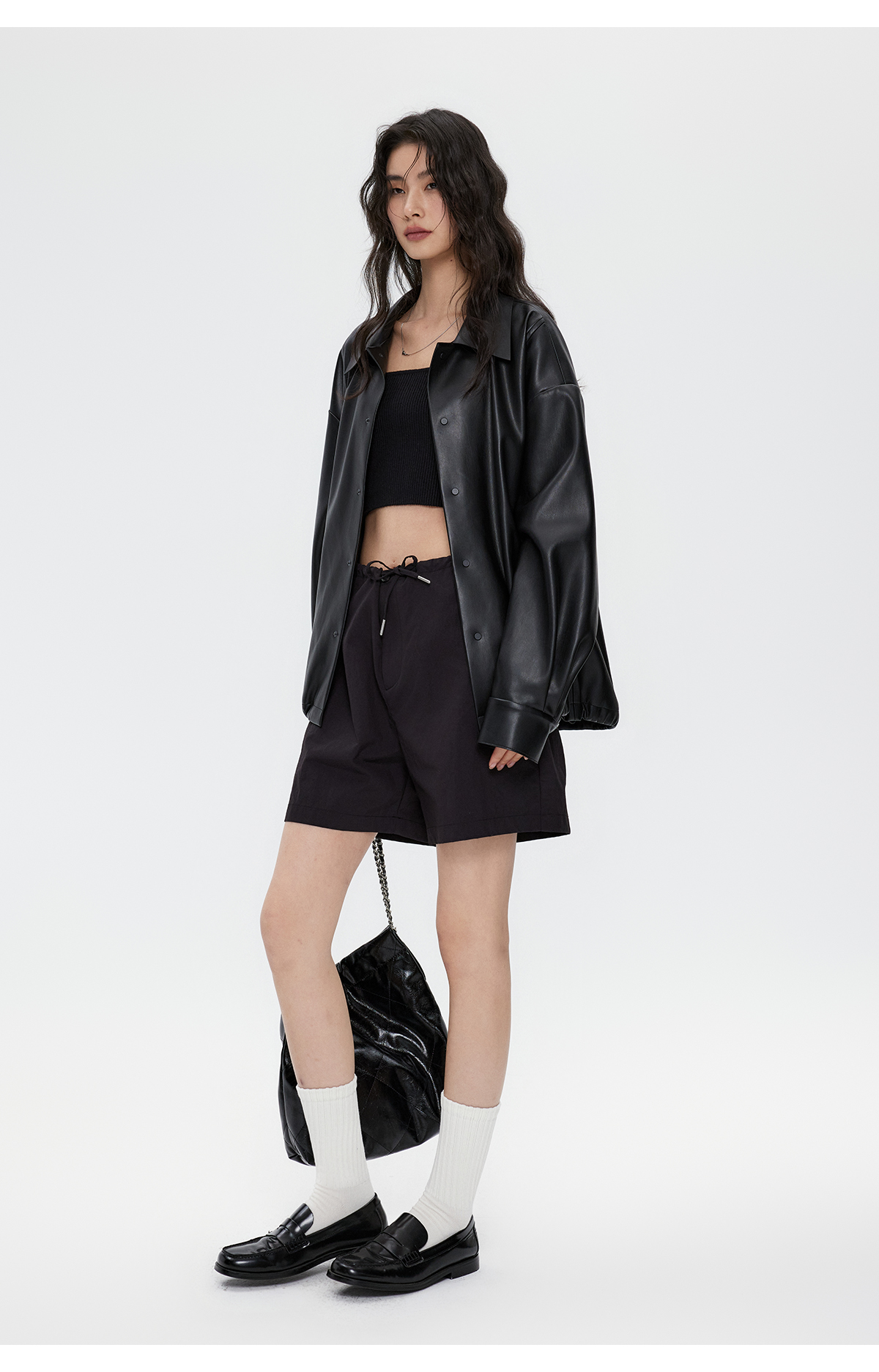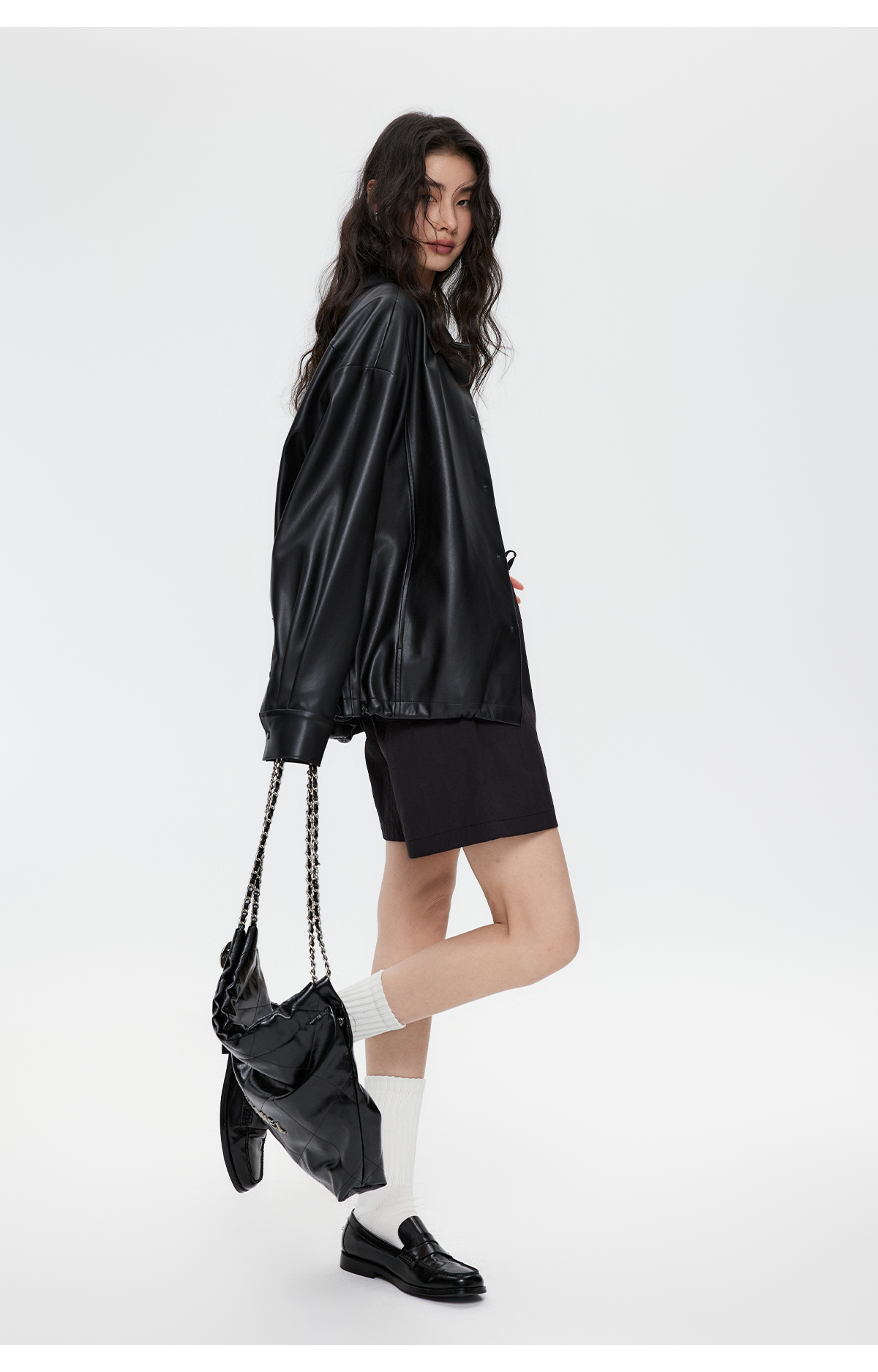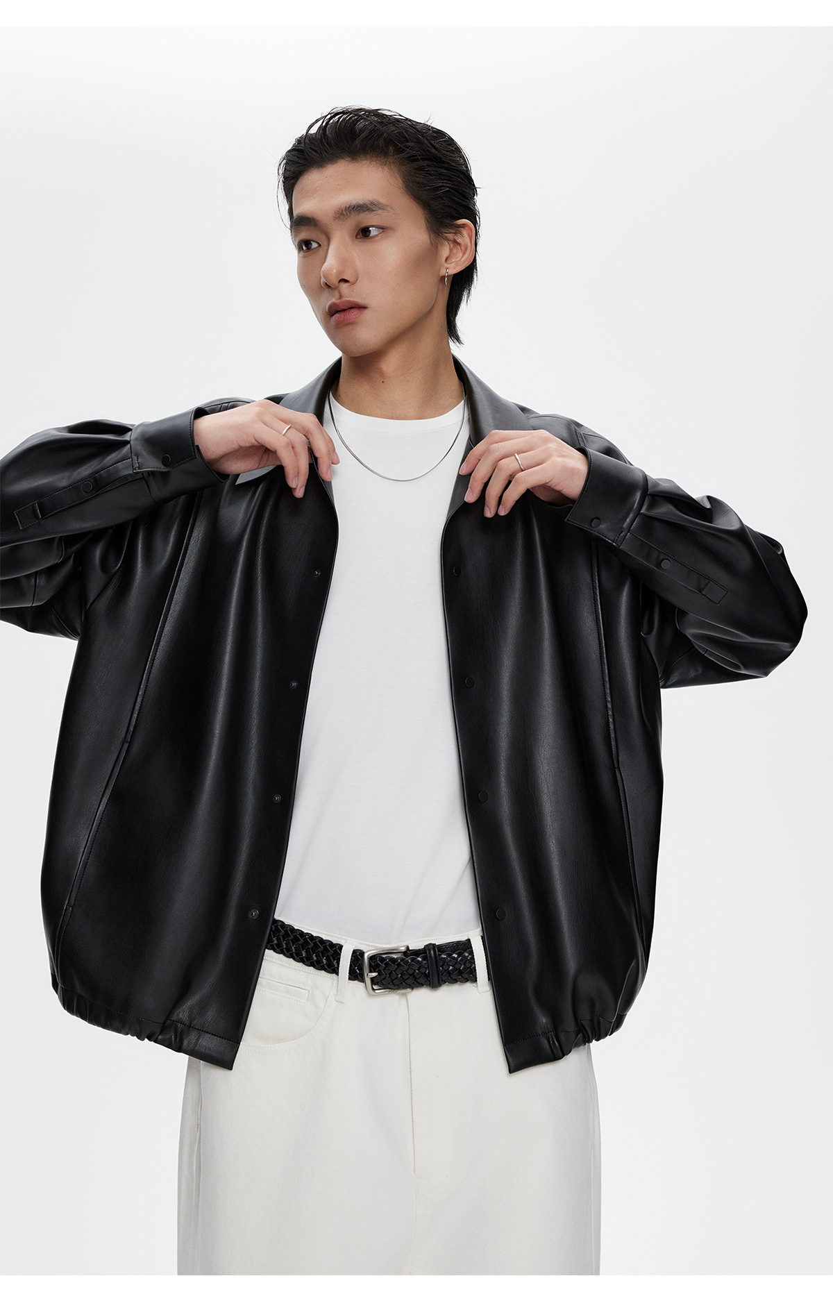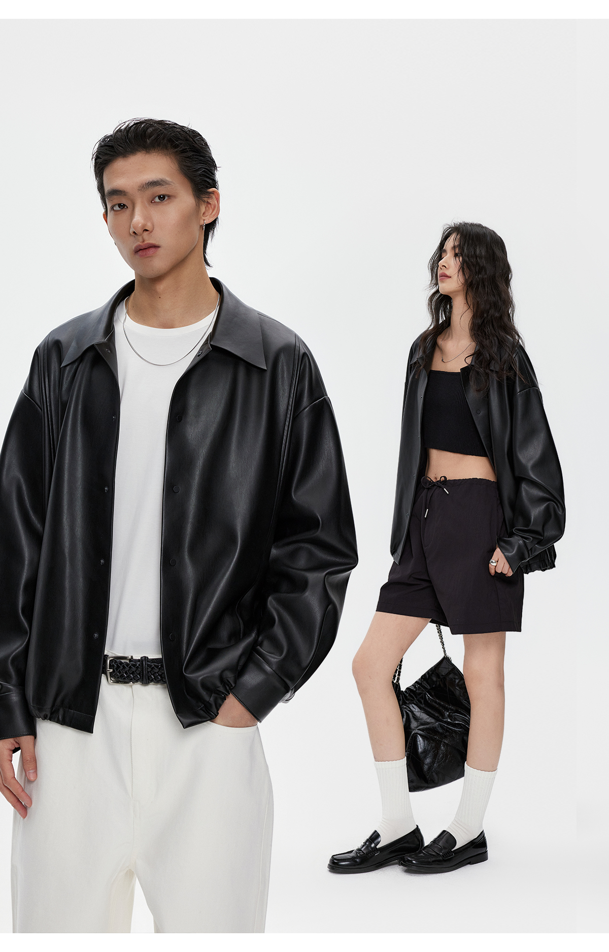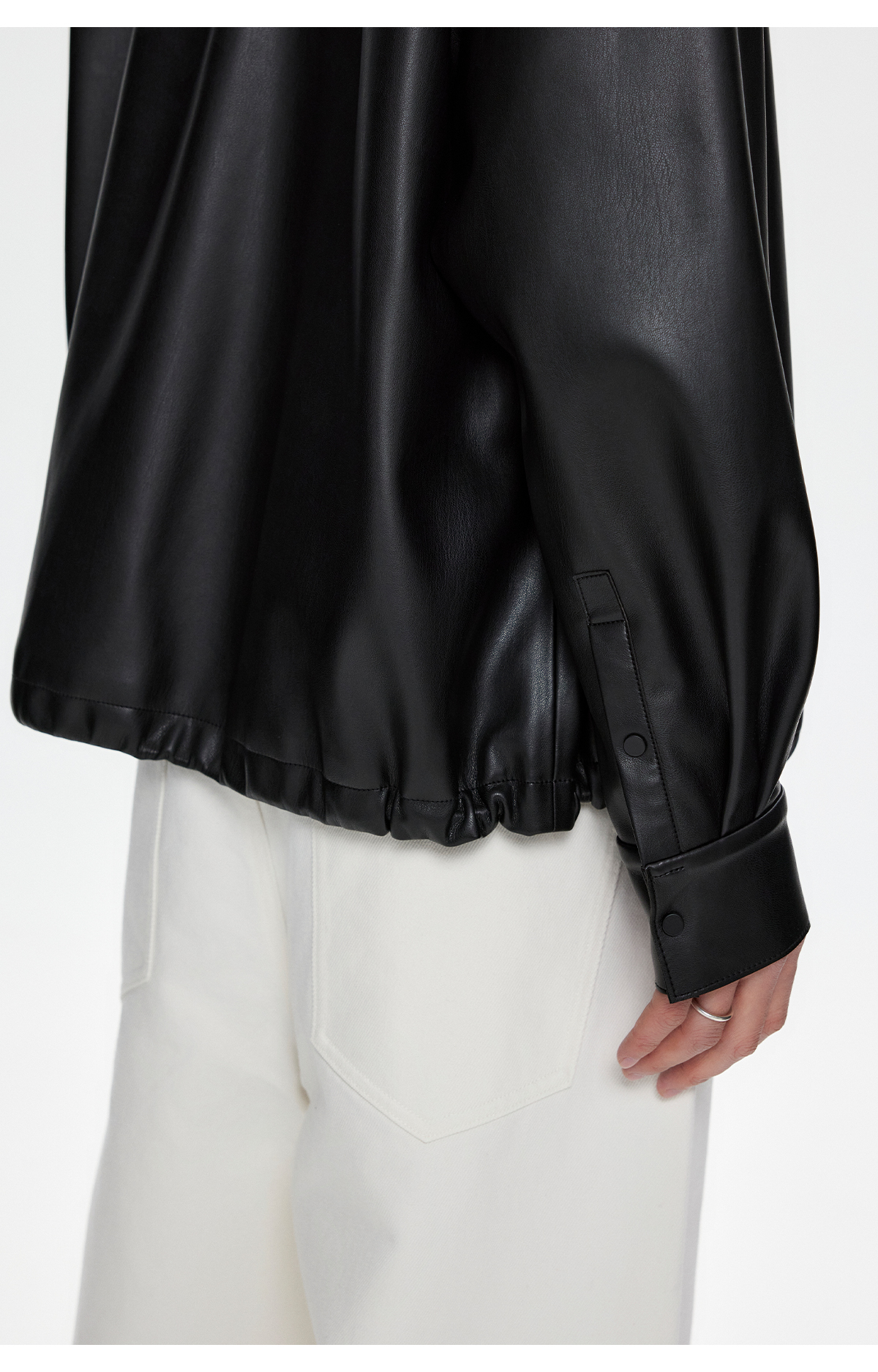 棉仓3461027002-蛋白PU皮翻领JI简设计衬衫式夹克外套