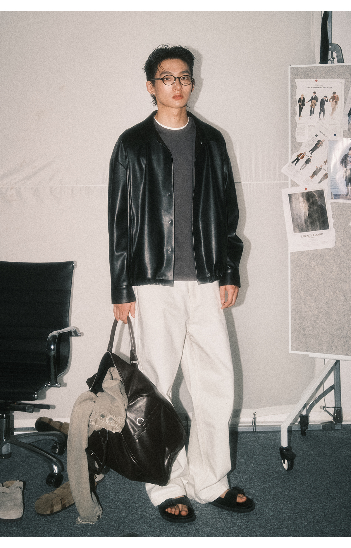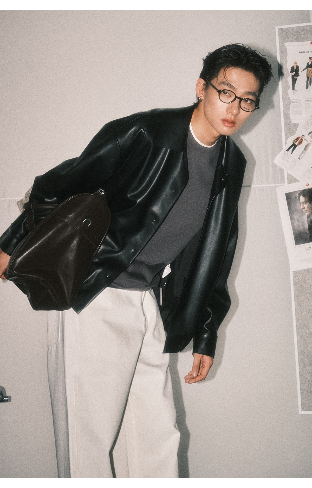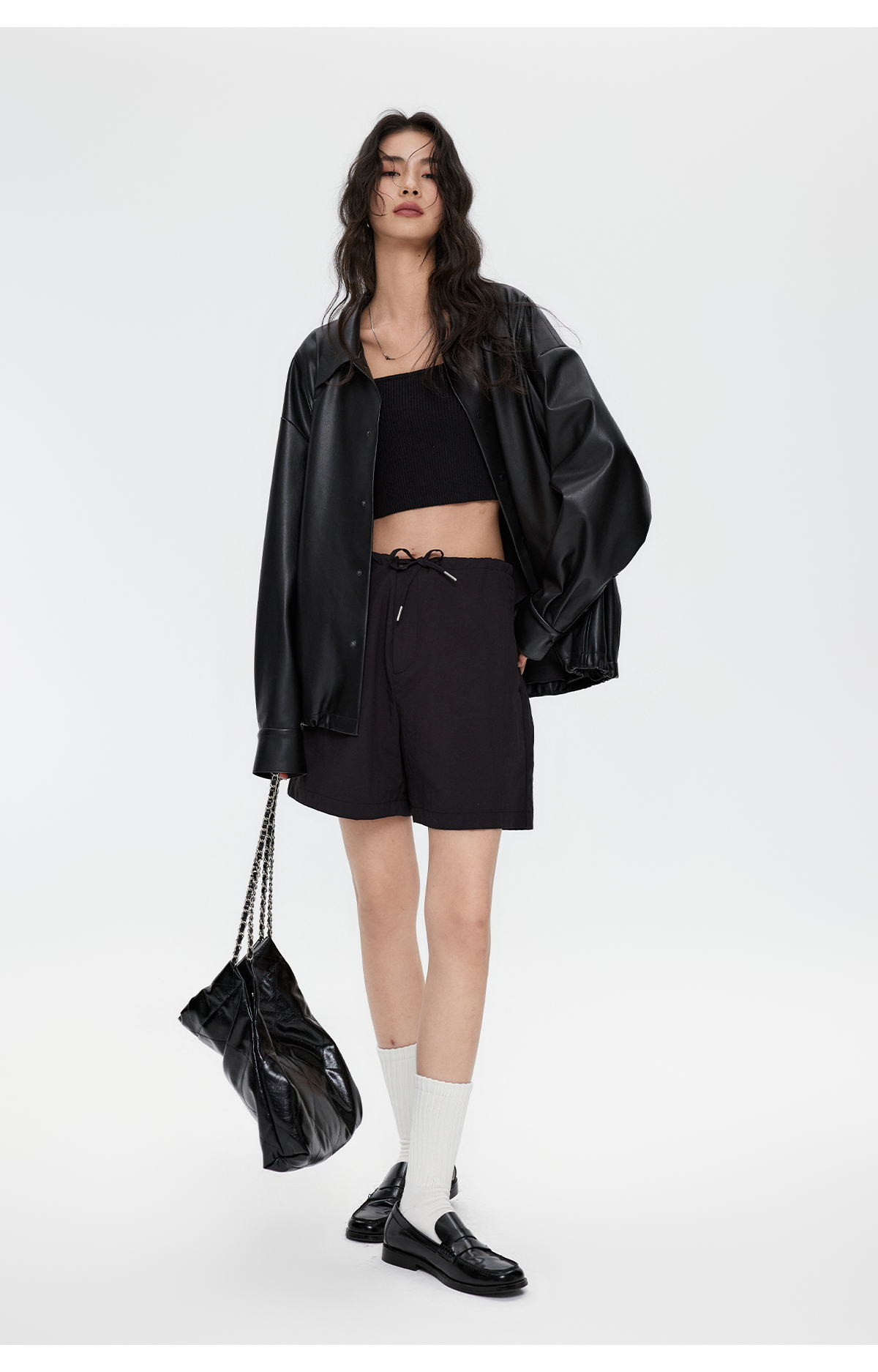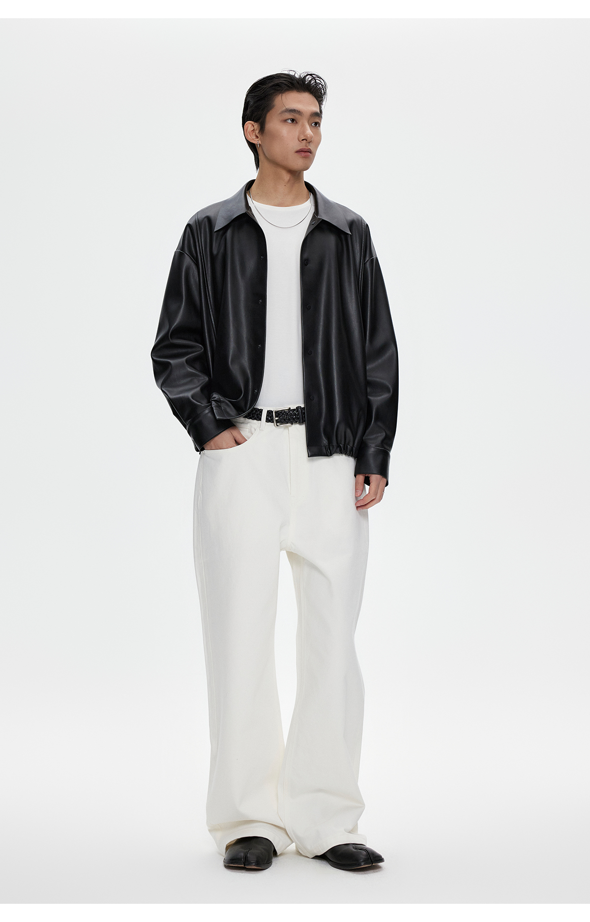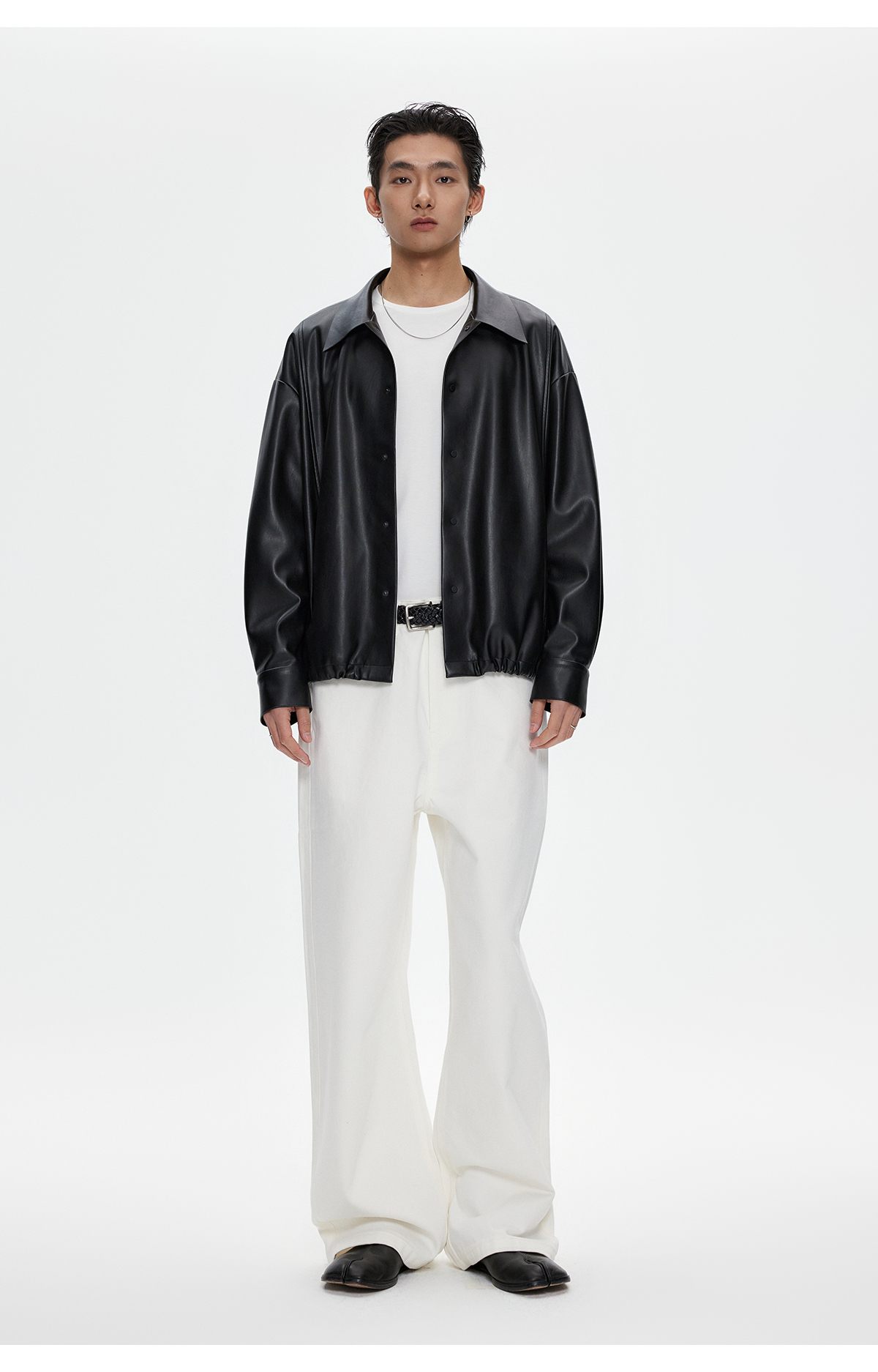 棉仓3461027002-蛋白PU皮翻领JI简设计衬衫式夹克外套