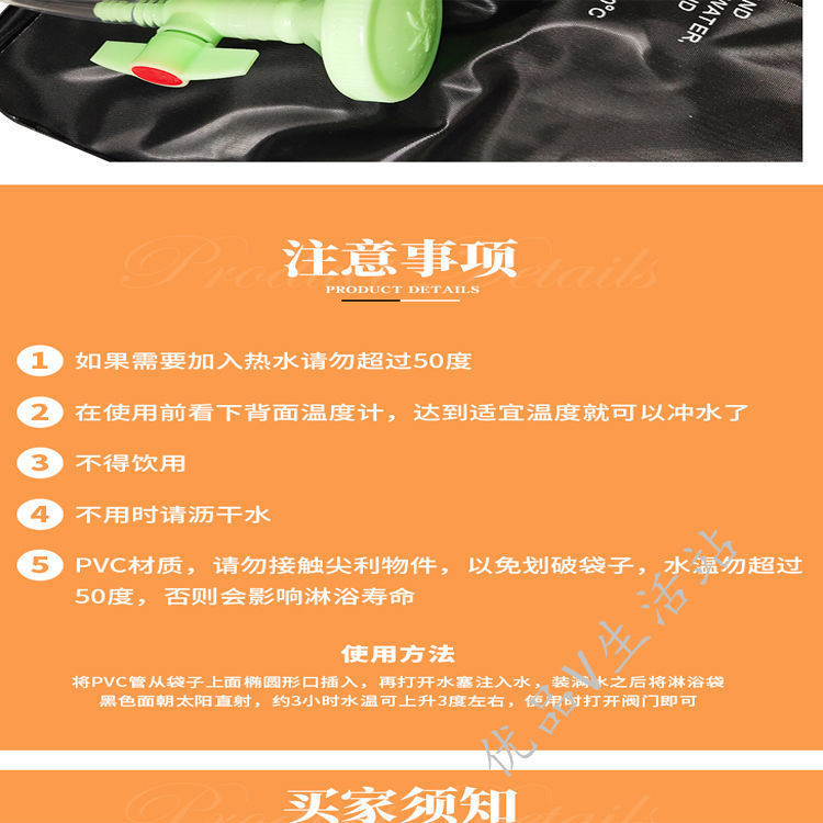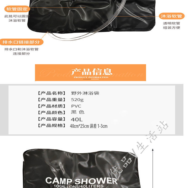 挂式40L 折叠野外沐浴晒水袋太阳能热水袋户外淋浴洗漱水袋洗澡袋