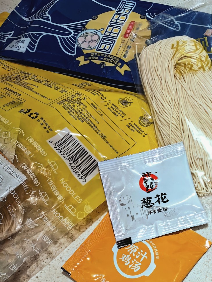 这碗简简单单的鸡汤银丝面,真的,太好吃啦!醇厚鸡汤,细腻银丝,再添一小撮翠绿葱花,不到三分钟,立马就能暖暖落胃!自己做的话,买买切切炖炖,一搞就得几小时呢,现代人,时间珍贵,得用来赚钱。。。这碗完美平替,面是湿湿的鲜面,配料也很干净,放心吃!