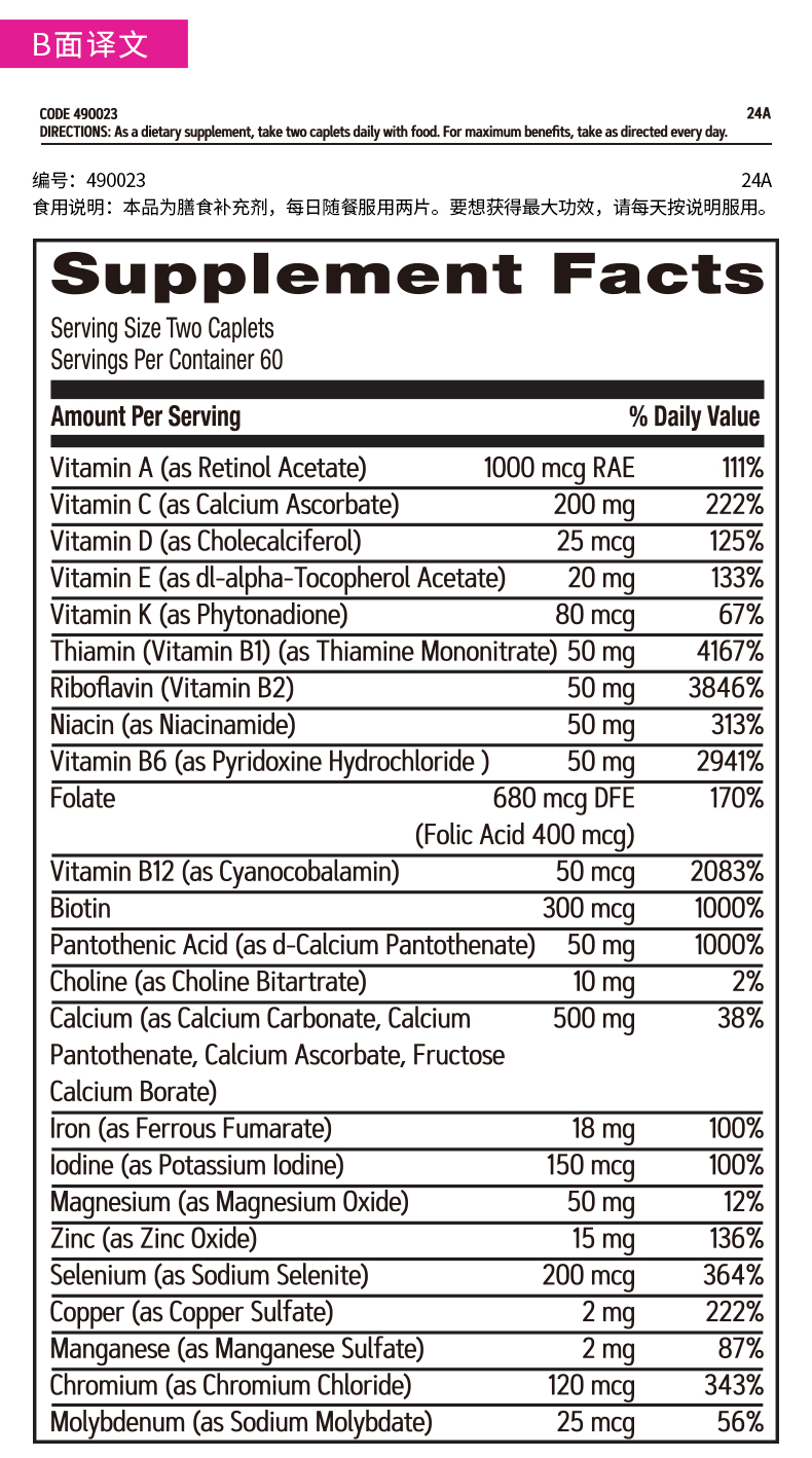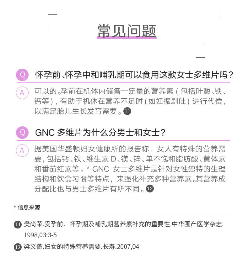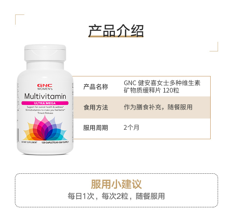 【缓释片】GNC健安喜女士多种维生素矿物质120粒 每日2粒