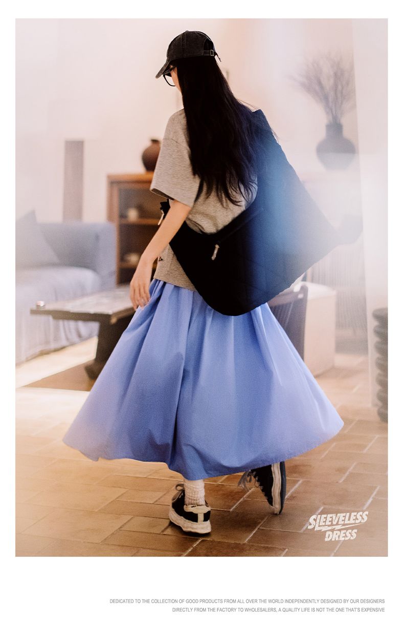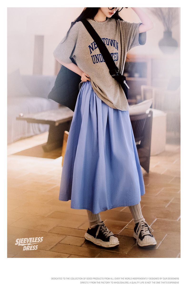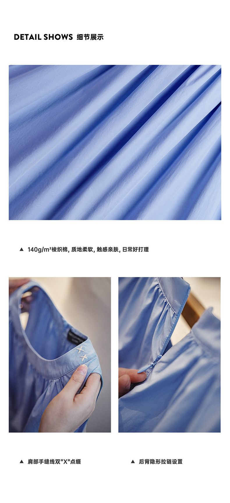 马登浅春系baby蓝无袖连衣裙休闲沙滩度假长裙春夏法式抽褶裙子女