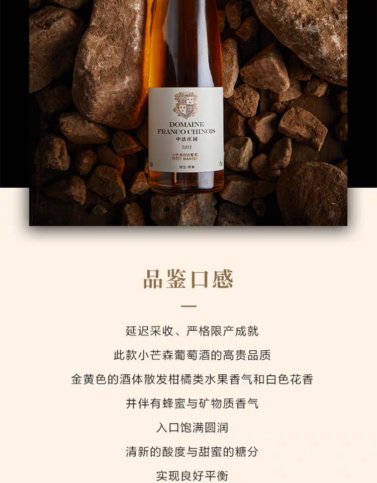 中法庄园小芒森甜白葡萄酒| 中法庄园的小芒森甜白葡萄酒堪称中国甜酒天花板,评为 “中国最佳甜葡萄酒”实至名归,也是“最华北最佳葡萄酒”