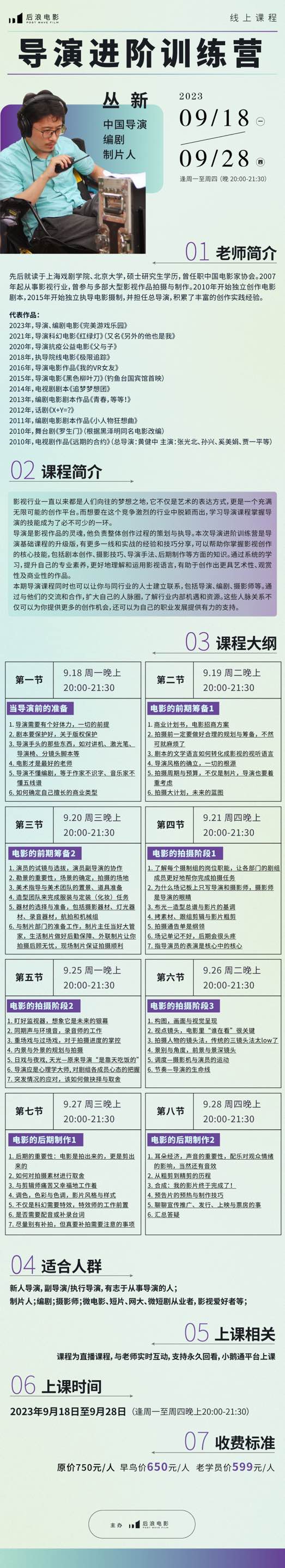 课程咨询、购买后请主动添加:课程小助手微信(18801468255),备注导演进阶课已付款,么么哒