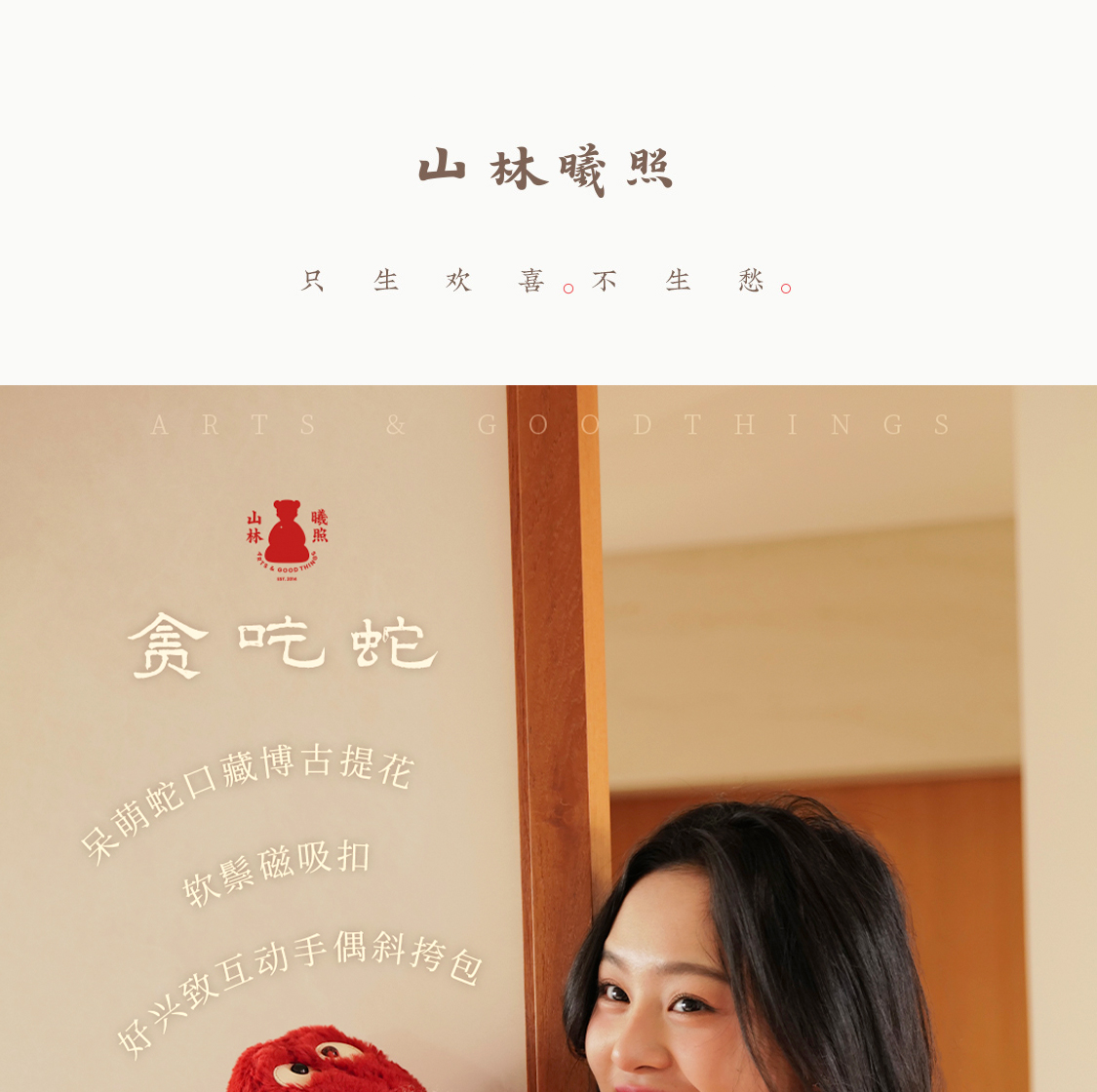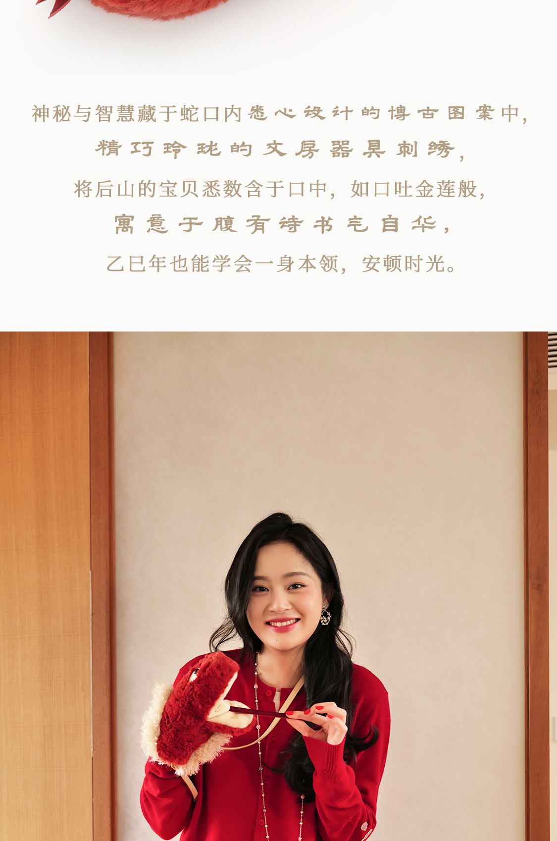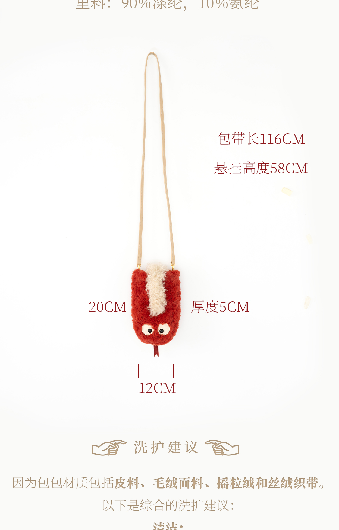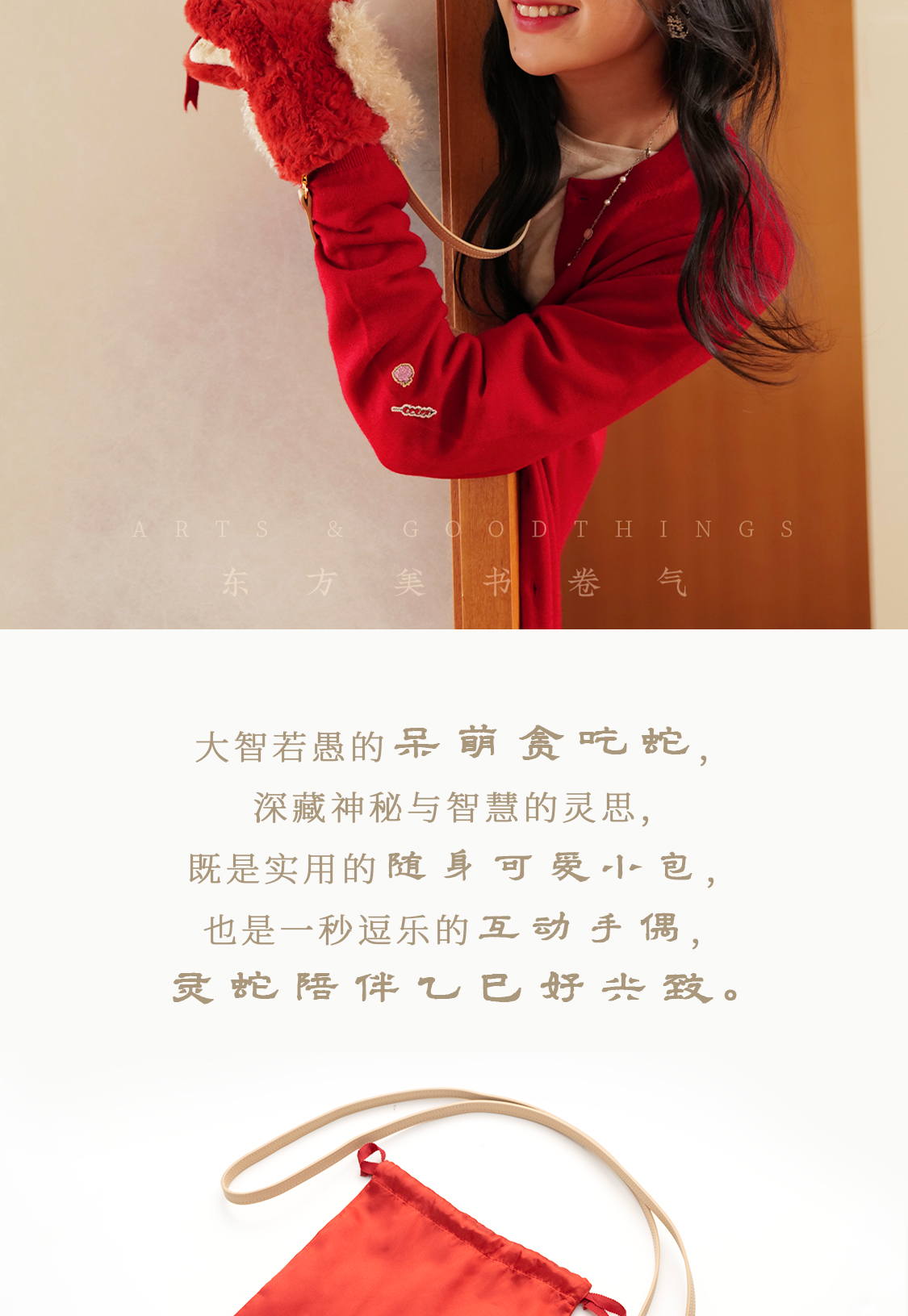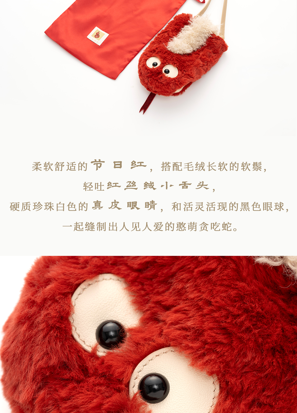 贪吃蛇 呆萌蛇口藏博古提花 软鬃磁吸扣 好兴致互动手偶斜挎包