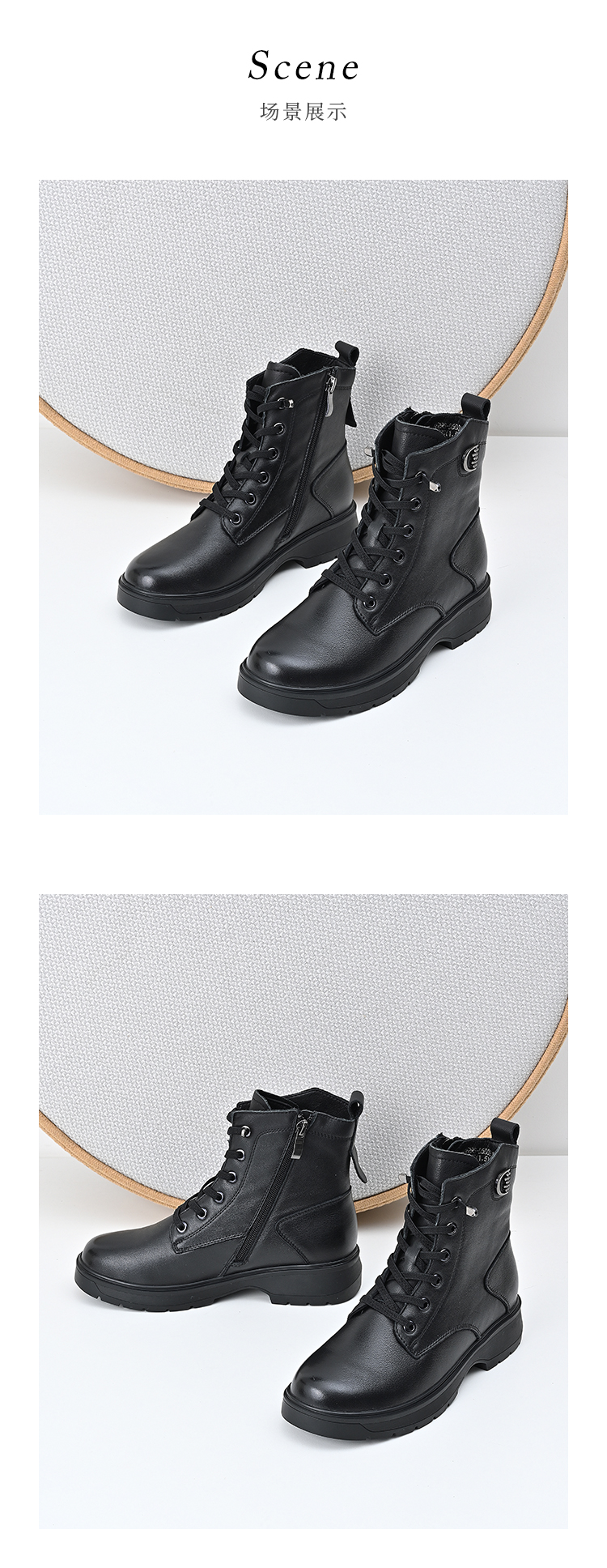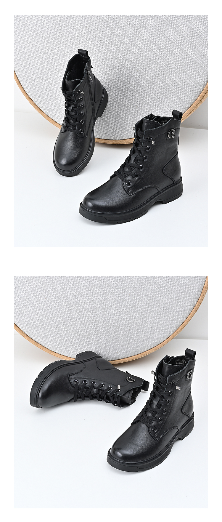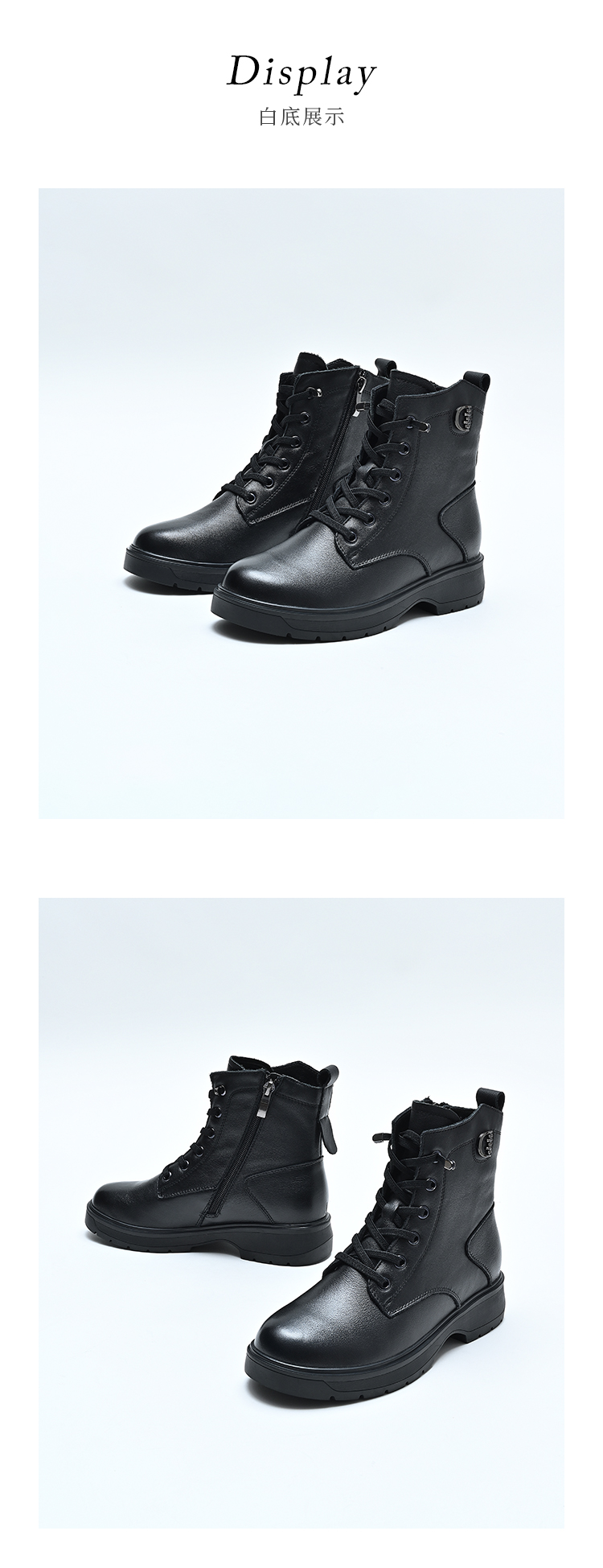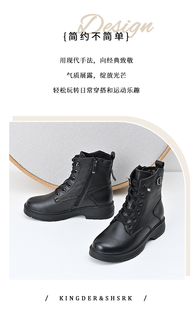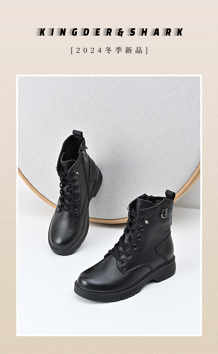 经典鲨2024冬季新款侧拉链加绒加厚侧拉链日常短筒马丁靴女KW296-D58031