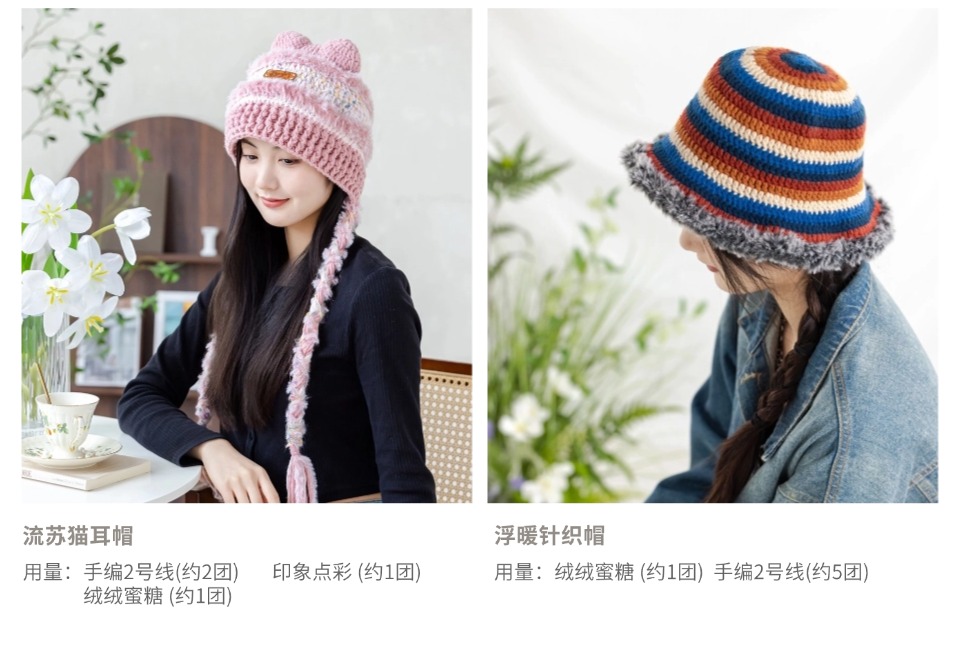 苏苏姐家念初毛球帽手工diy钩针编织羊花式线冬季毛线团材料包