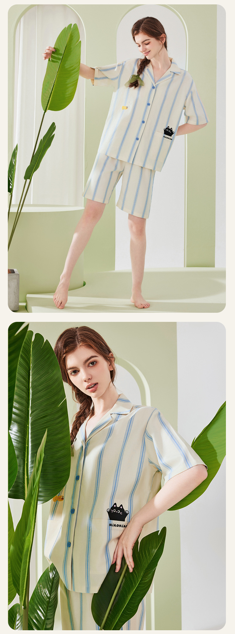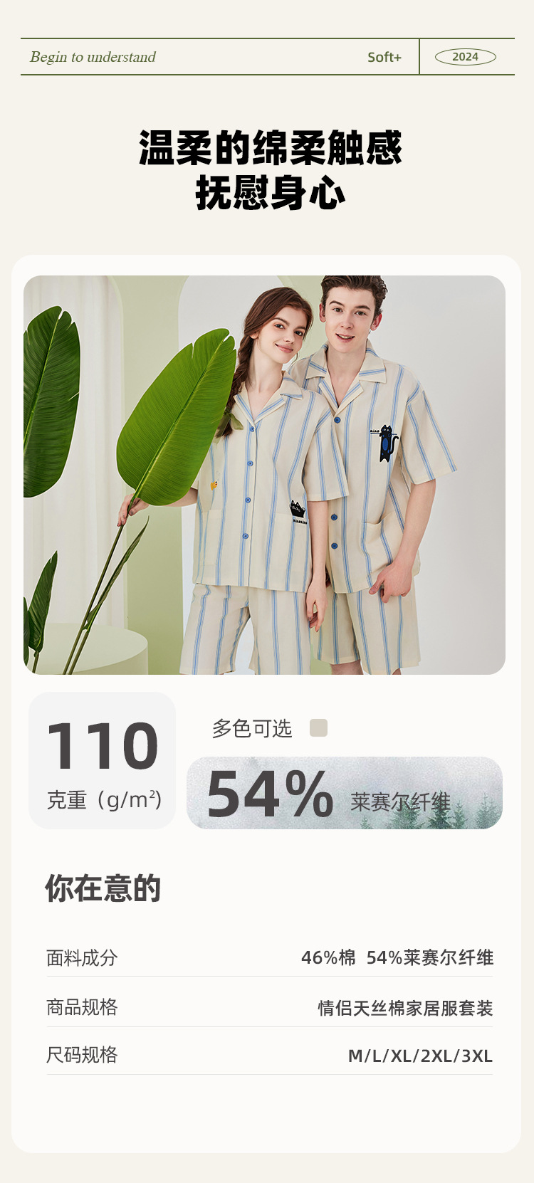 莱赛尔天丝棉女士睡衣女夏季凉感薄款短袖短裤睡衣女士家居服套装