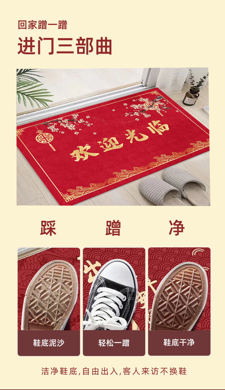 【水晶绒材质❗️喜庆入户红门垫】新中式新年地垫,进门马年新年地垫地毯,入户婚礼红色地垫,结婚进门垫好礼新年礼盒年货礼盒