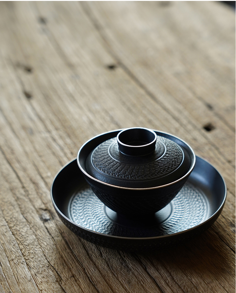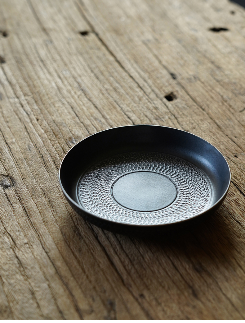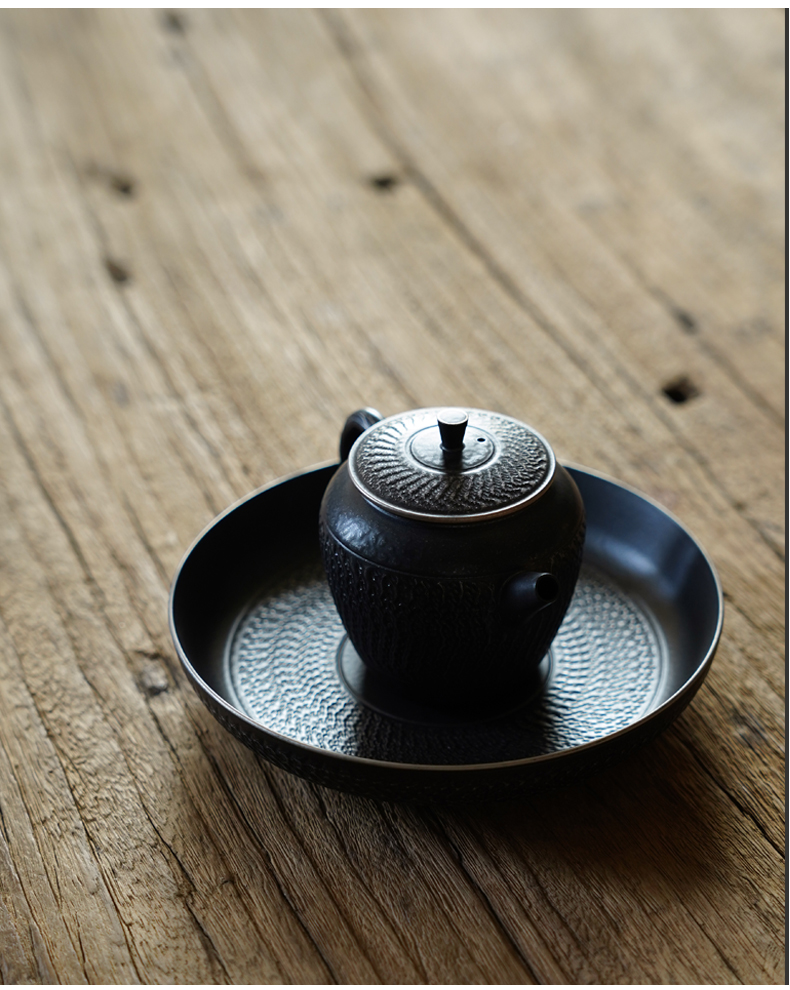 永利汇功夫茶具陶瓷干泡盘黑金系列跳刀工艺复古干泡台壶承茶托